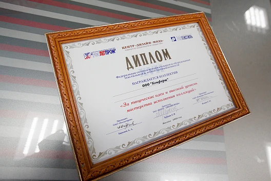 Продукция компании была неоднократно отмечена различными дипломами и наградами: «За творческие идеи и высокий уровень мастерства исполнения коллекций», «За высокие потребительские свойства товара», «За большой вклад в формирование национального рынка товаров отечественного производства». В 2003 году продукция была отмечена вручением «Знака потребительского признания», а в 2005 году российский союз промышленников и предпринимателей (РСПП), ОАО «РосЛегПром» и ОАО «Концерн «Ростекстиль» признали нашу компанию «Лучшим предприятием года 2005».