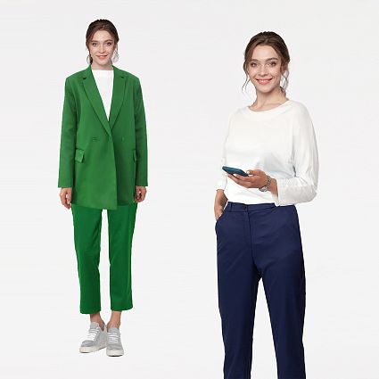 В помещениях с кондиционером даже в летнюю жару прохладно, поэтому брючный костюм будет актуален и летом. Но материалы будут другими. Идеальны хлопок и лен, так как тело в них дышит. Но натуральные ткани сильно мнутся, поэтому лучше выбирать смесовые, с добавлением синтетических и искусственных нитей: лен с вискозой, хлопок с эластаном. Летние костюмы могут быть без подкладки.