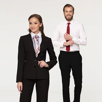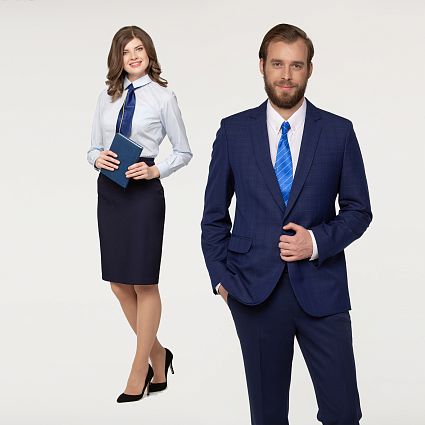 В деловом стиле есть много направлений: от строгого, официального до почти повседневного casual. Темные, насыщенные тона подчеркнут авторитет и респектабельность: черный, темно-синий, темно-серый, белый в сочетании с чуть более яркими акцентами в аксессуарах. Это будет хорошим цветовым решением для деловых переговоров, официальных презентаций.