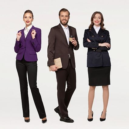 В целом выбор одежды для хостес достаточно широк. Это могут быть юбки, брюки, блузы, платья, жакеты, а для мужчин — строгий деловой костюм.