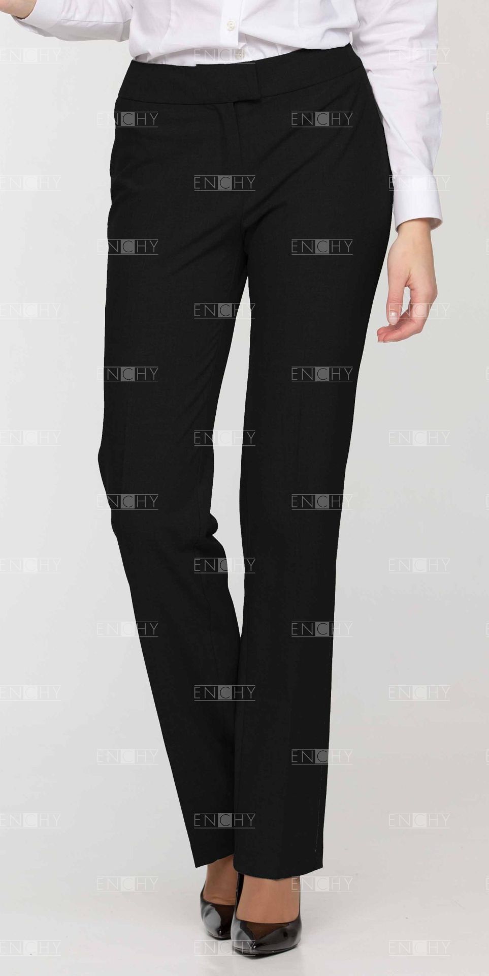 Классические брюки, прямые от бедра, стрелки придают элегантный внешний вид. Посадка брюк ниже линии талии.