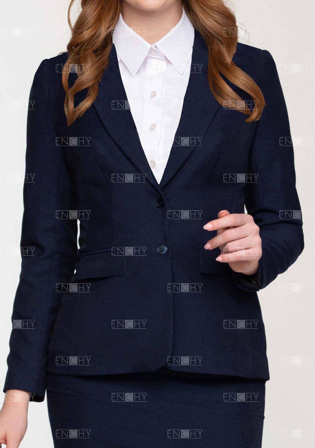 Универсальная модель с английским воротником и застежкой на 2 пуговицы. Силуэтная форма образована за счет рельефов,талиевых и плечевых вытачек и шлицы. На переде два прорезных кармана с клапанами в рамку и верхней нагрудной листочкой. Такой жакет отлично впишется как в строгий дресс-код, так и в более повседневный, если сочетать с кедами!