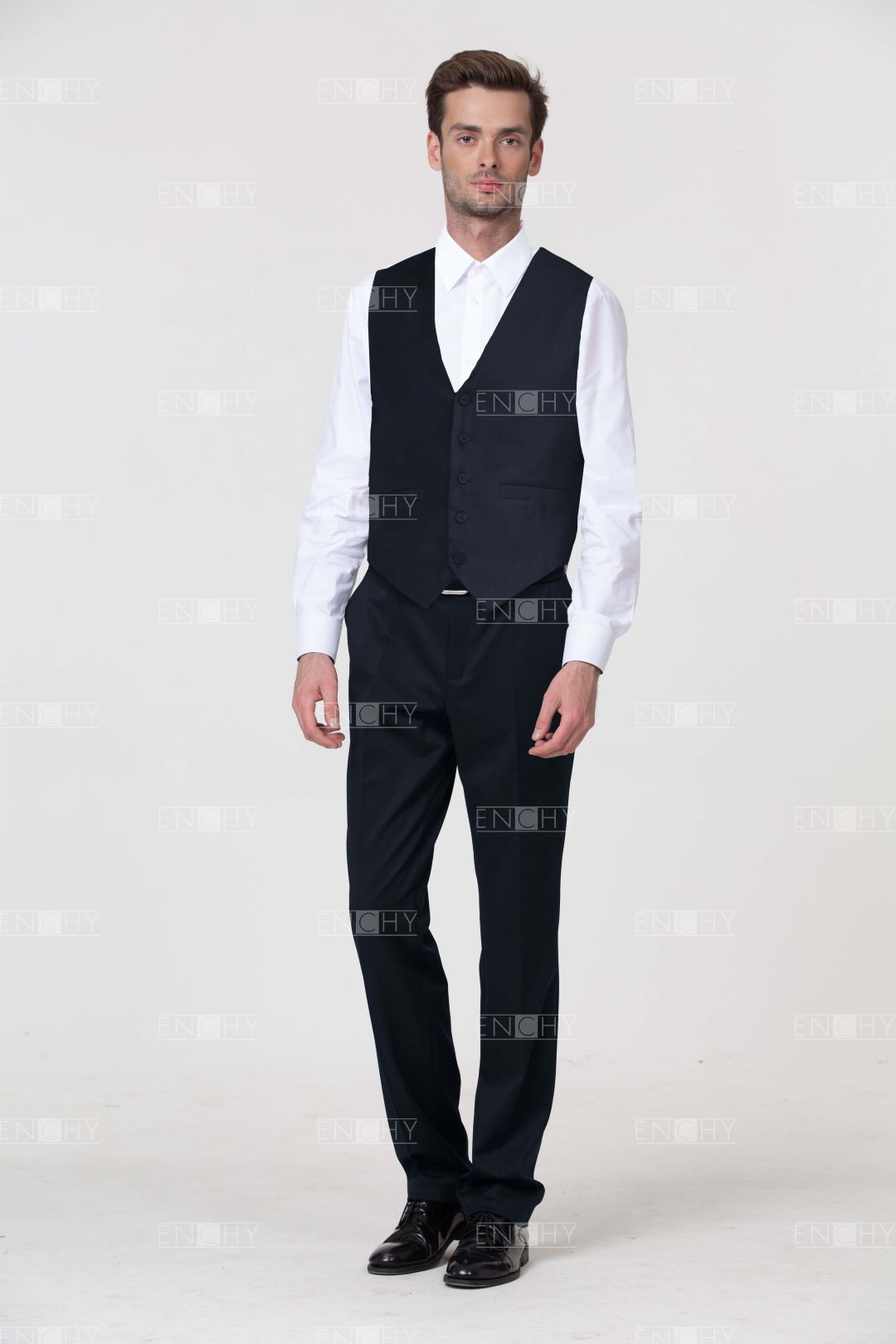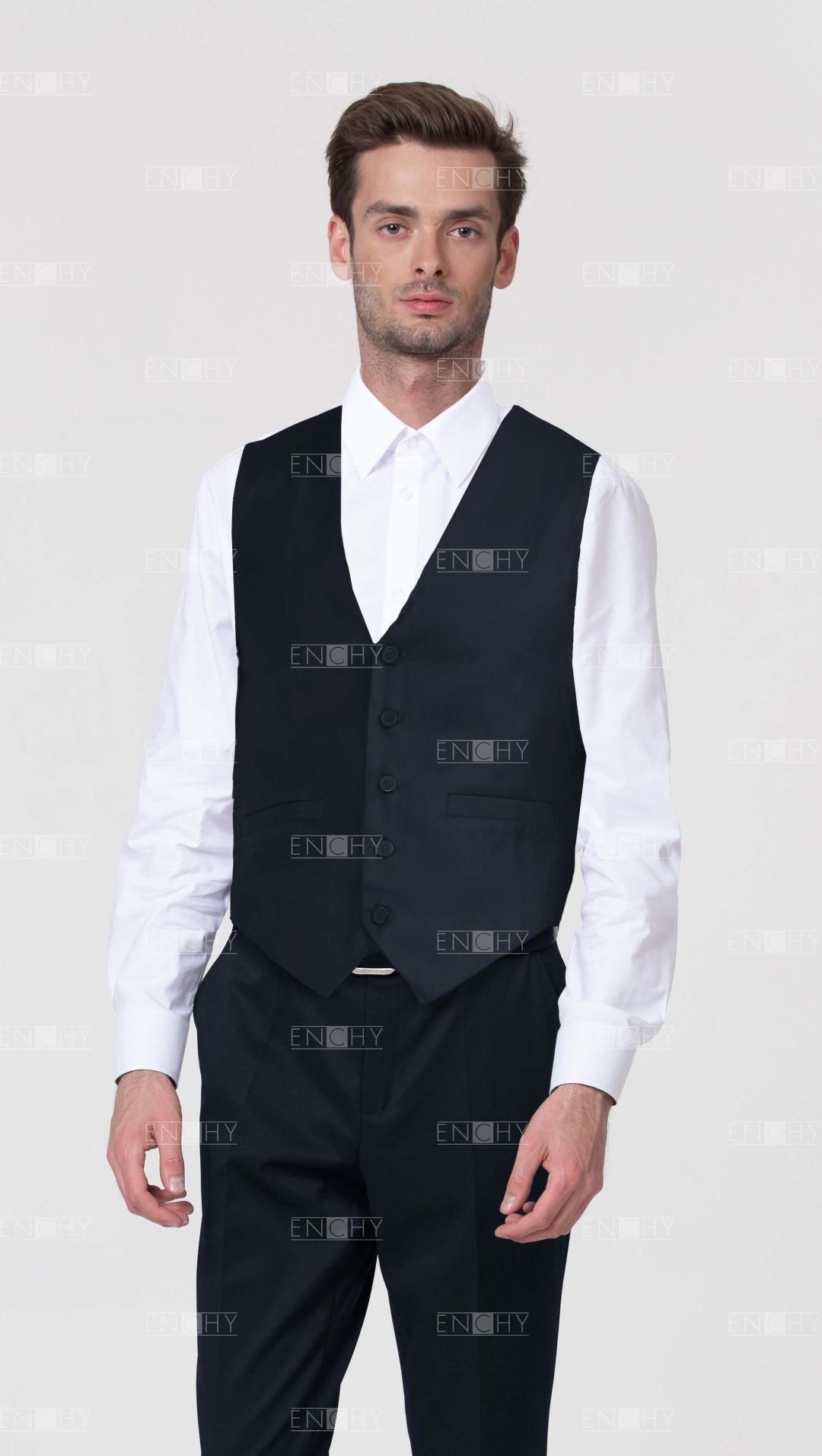 Жилет на подкладке стильной формы с модной линией плеча подойдет как для барменов, так и для офисных сотрудников. Застежка на 5 пуговиц, спереди карманы с листочкой. Сзади вытачки и хлястик для регулировки ширины с полукольцами. Линия борта оформлена острыми уголками.