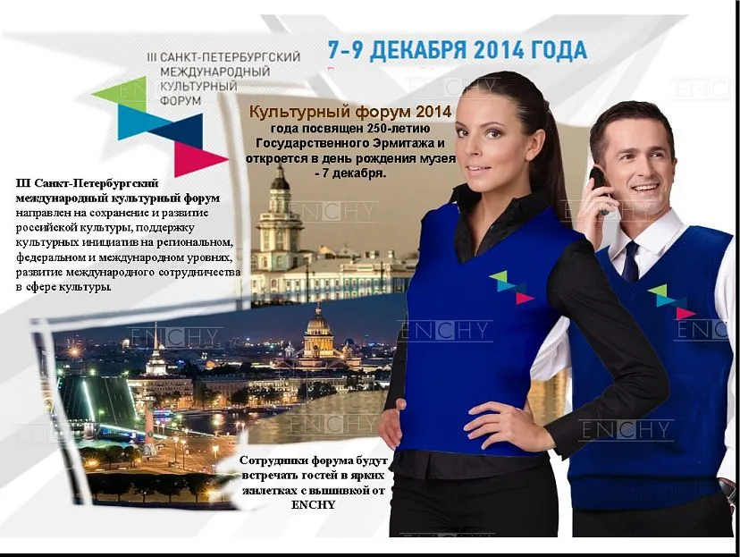 Сотрудники форума будут встречать гостей в ярких жилетках с вышивкой от ENCHY