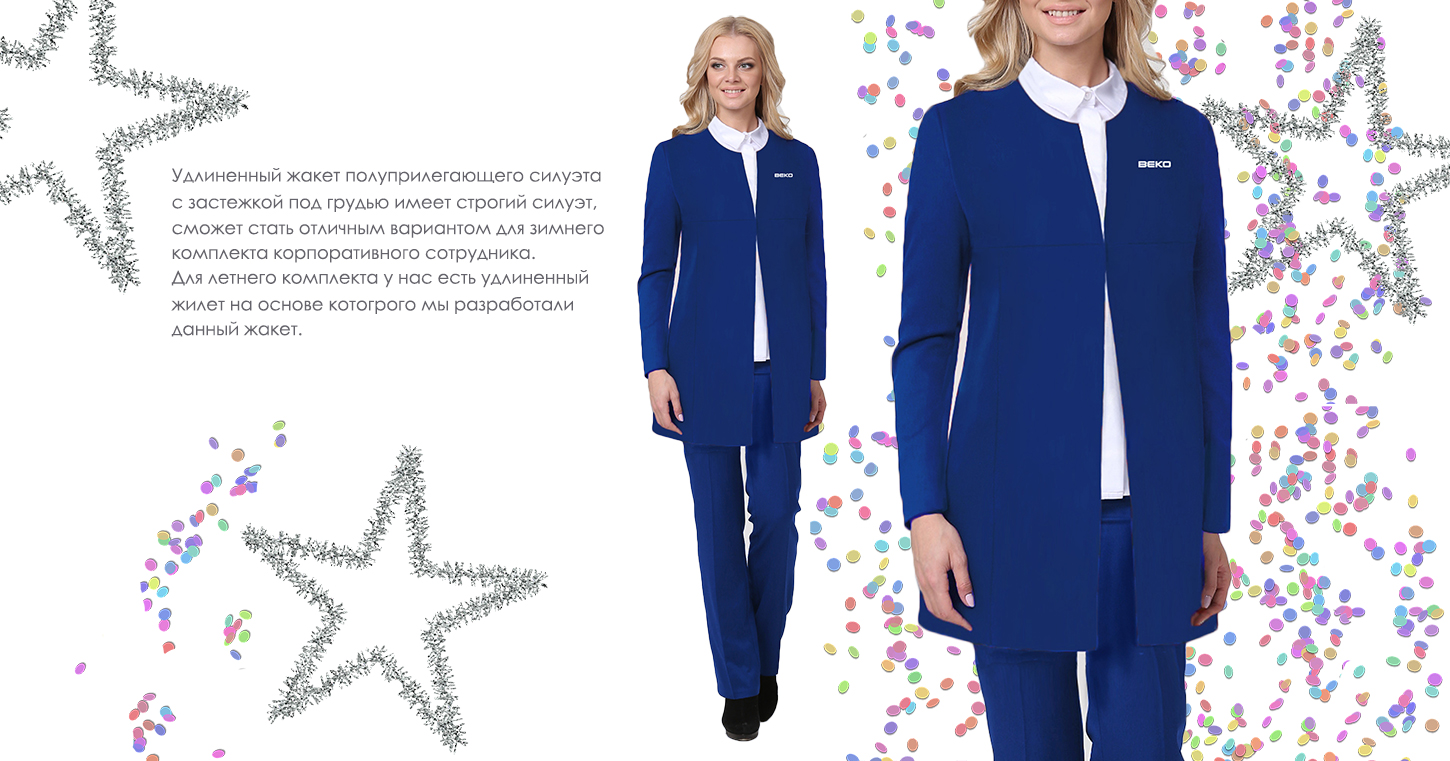 Важной особенностью удлиненной модели жакета, является то, что благодаря своей монументальности и силуэтной форме,