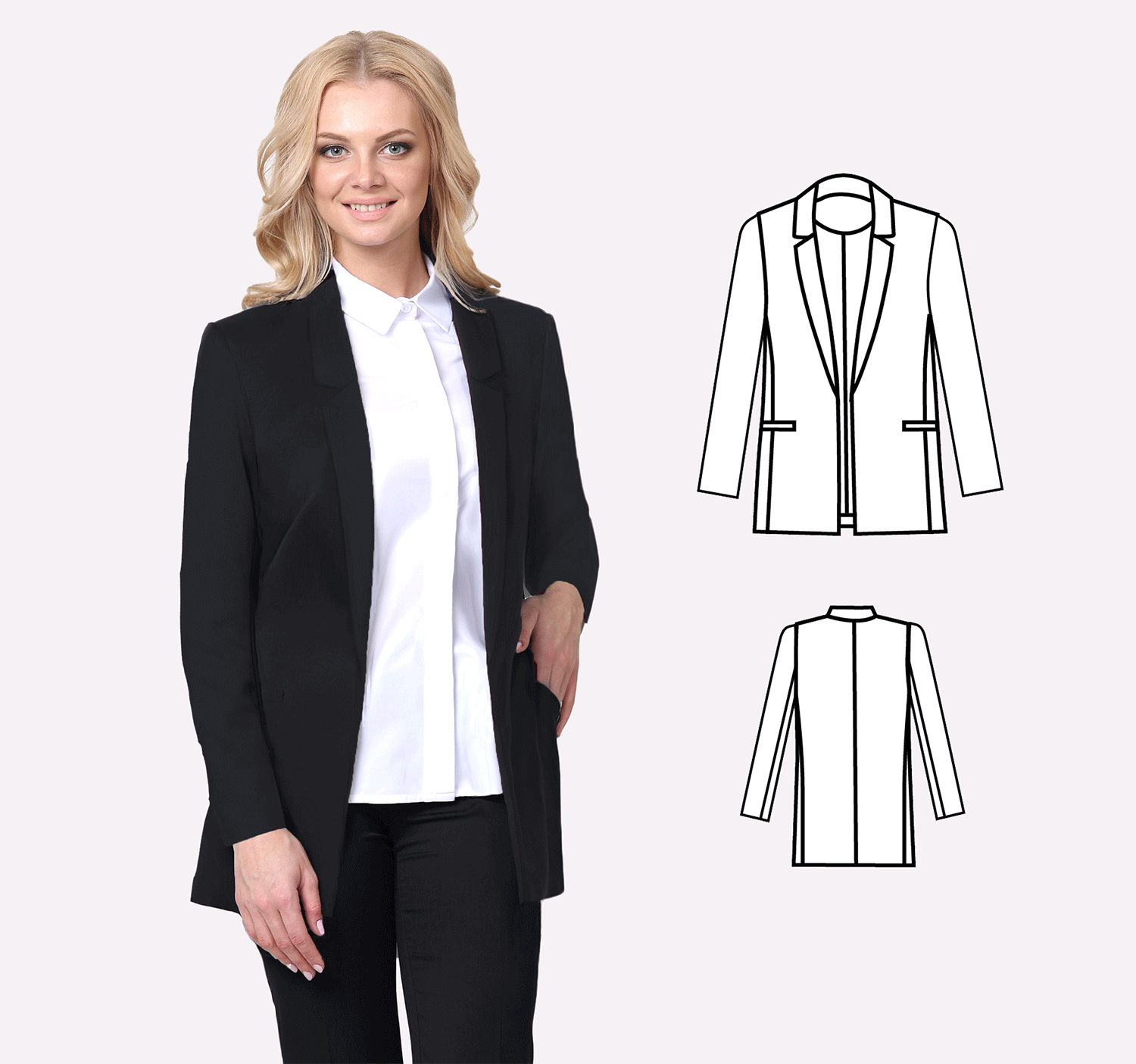 Важной особенностью удлиненной модели жакета, является то, что благодаря своей монументальности и силуэтной форме,