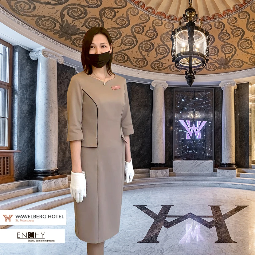 Компания ENCHY отшила бежевые платья для работников ресепшен.