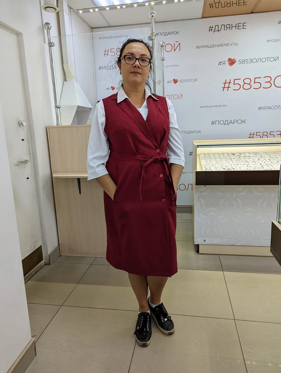 Мы отшили стильные oversize блузы и двубортные сарафаны в фирменных цветах.