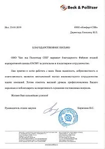 Мы считаем, что лучший показатель успешного проекта - клиент, довольный конечным результатом. Поэтому мы рады поделиться отзывом от ведущей международный компании по инженерно-техническому обслуживанию во всех отраслях производства и промышленности, как на местном, национальном, так и на международном уровнях - Beck & Politzer.