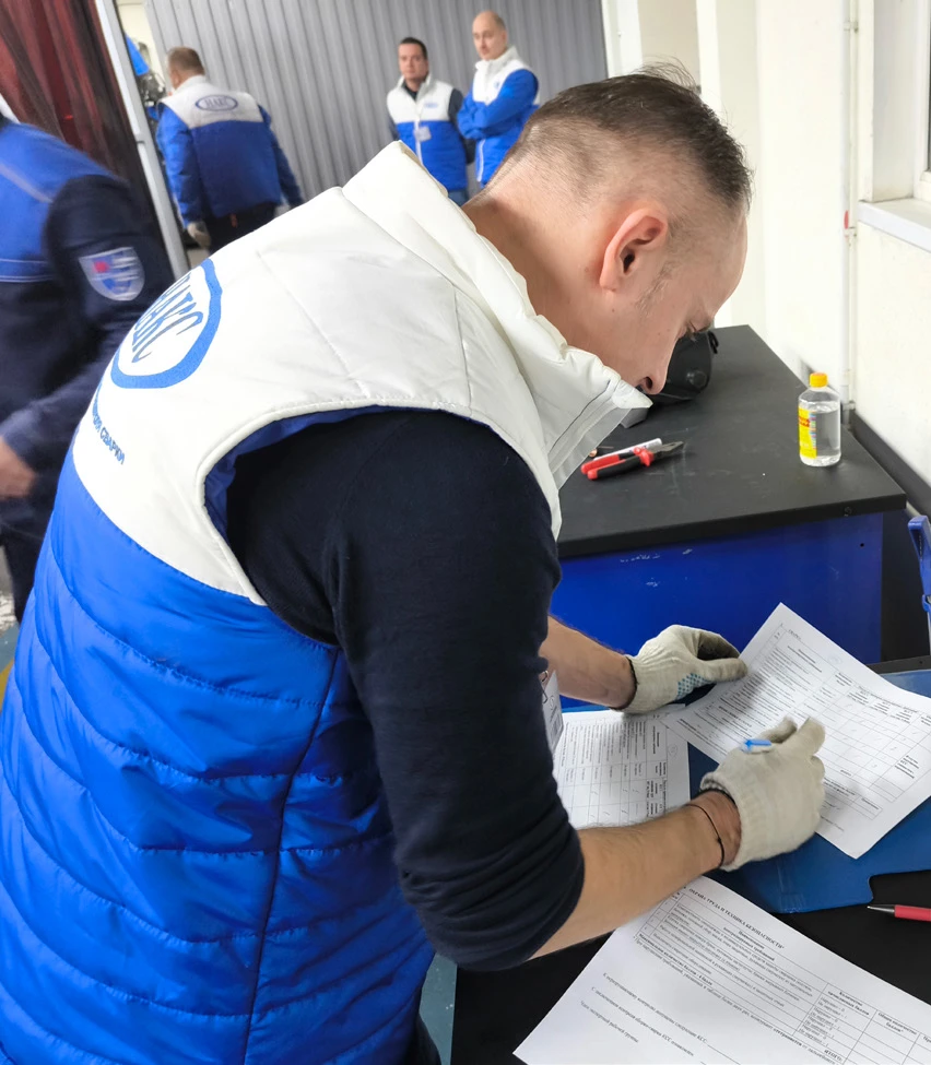 Экспертная группа в жилетах изготовленных ENCHY на всероссийском конкурсе профессионального мастерства «Лучший сварщик — 2024»