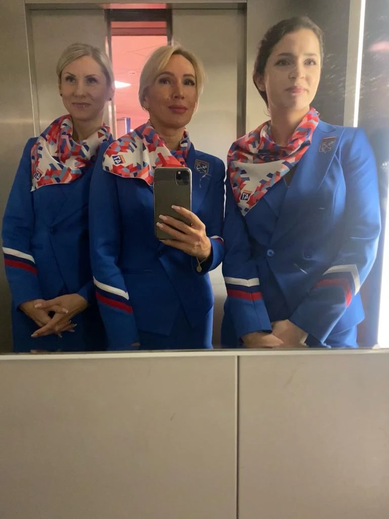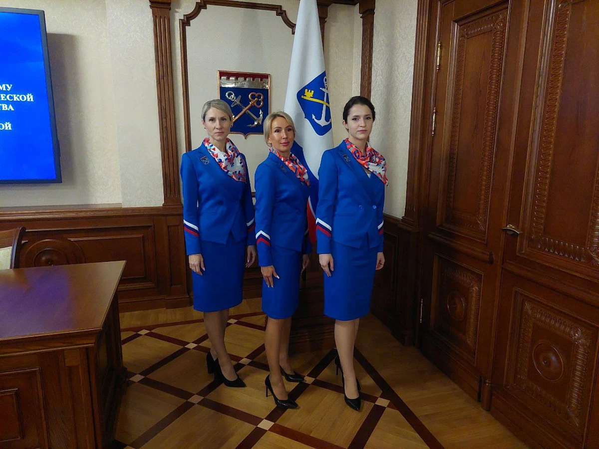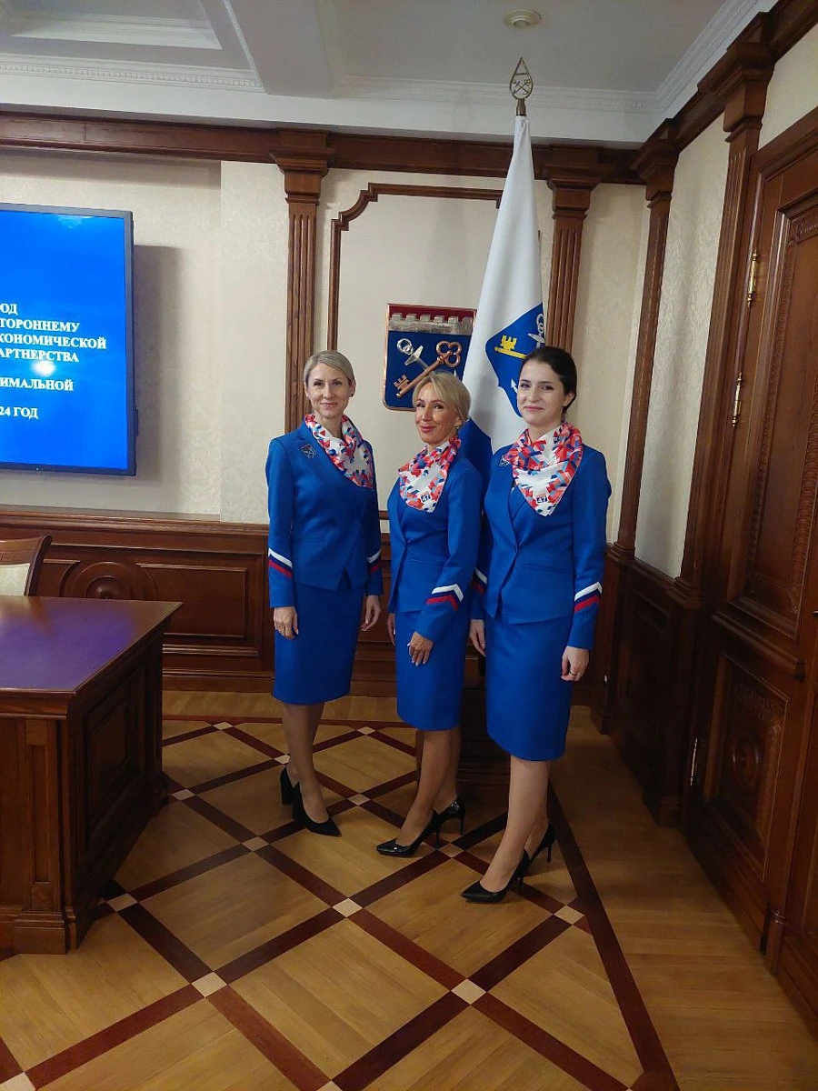 Вот такую яркую униформу с отделкой вышивкой и "флагами" для сотрудниц ЦЗН на мероприятия мы отшили.