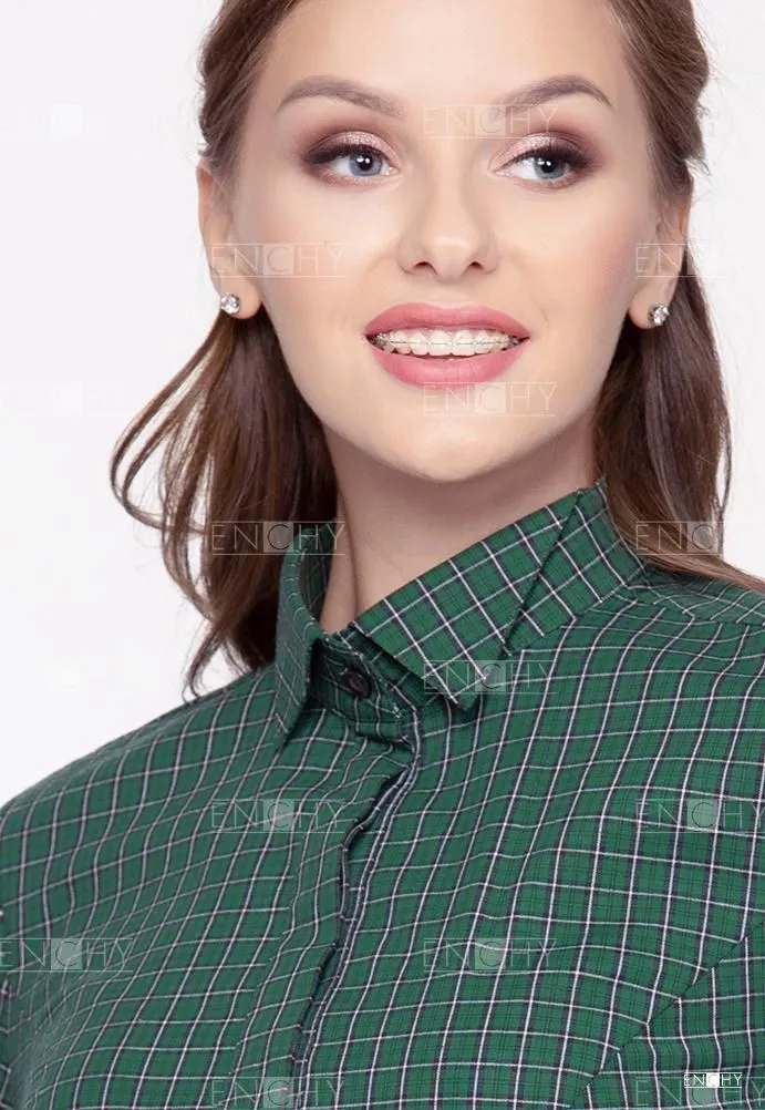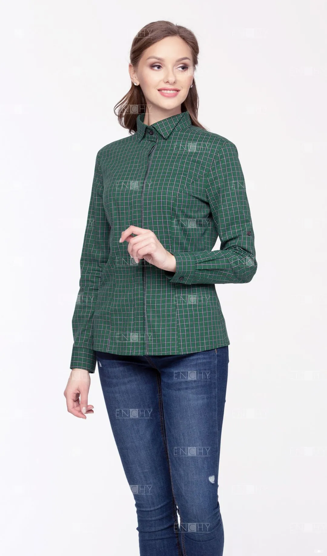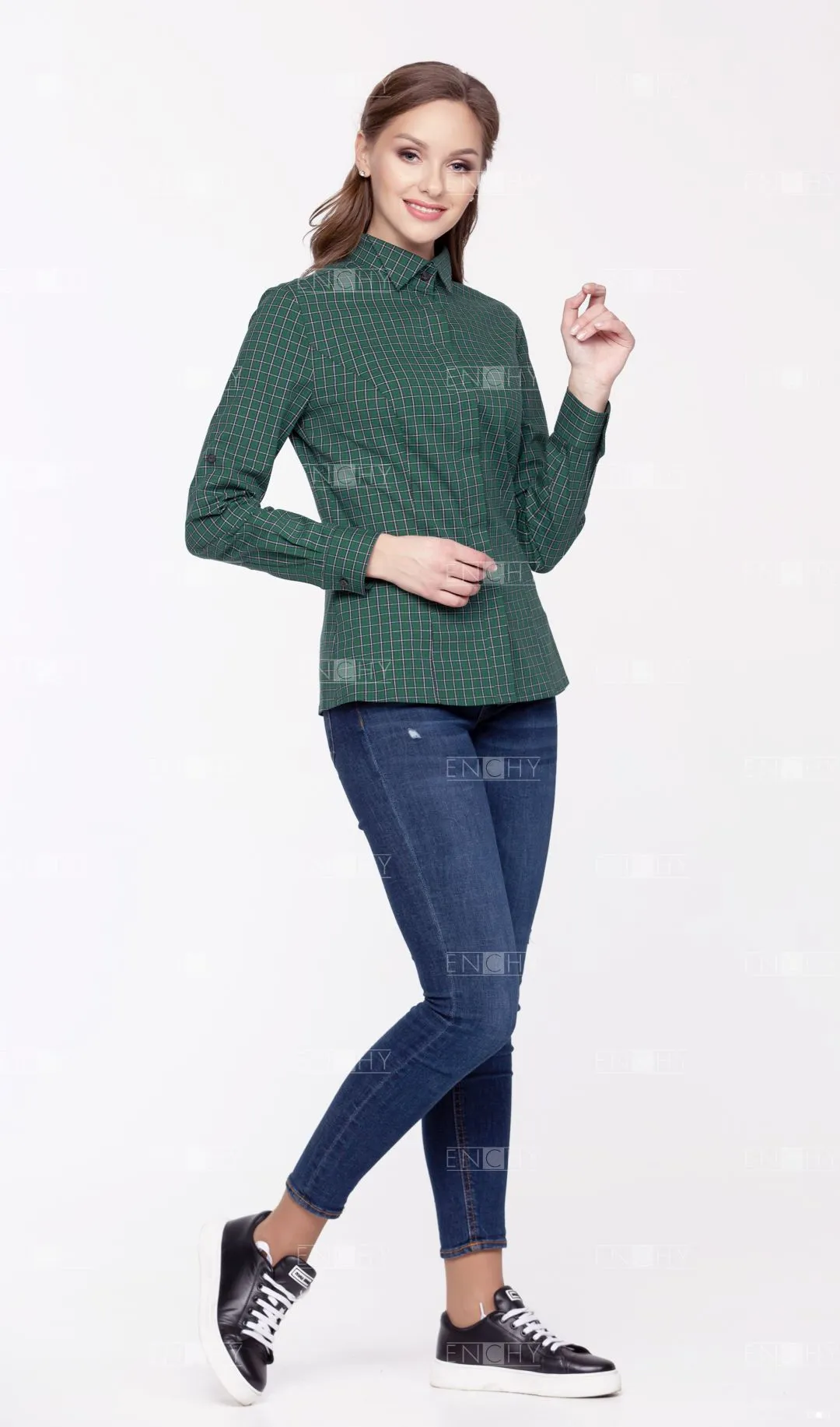 Блуза полуприлегающего силуэта. Для посадки на передних деталях построены рельефные швы, на спинке притачная двойная кокетка и вертикальные рельефы от кокетки до низа. Изюминка блузы- специальный воротник под бабочку! Втачной длинный одношовный рукав с притачной манжетой с застежкой на 1 петлю-пуговицу. Разрез рукава обработан планкой с острым углом. Так же рукав имеет пату выше локтя, позволяя удобно завернуть и закрепить рукава. Блуза имеет центральную супатную застежку. Низ изделия слегка округлой формы.