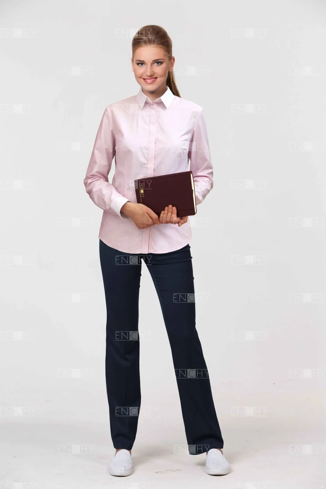 Блуза женская классическая со стояче-отложным воротником. Форма образована нагрудными вытачками и талиевыми вытачками до низа. На спинке двойная кокетка. Блуза с супатной застежкой . Рукав длинный одношовный с притачным манжетом. Манжет застегивается на 2 пуговицы. Низ блузы скругленный.