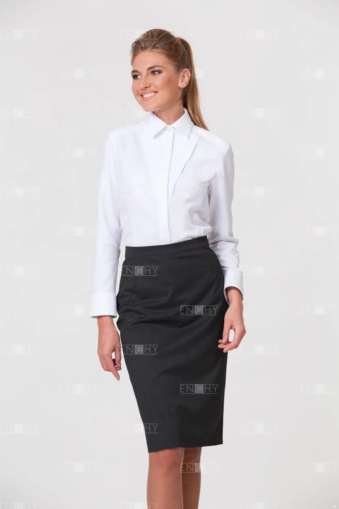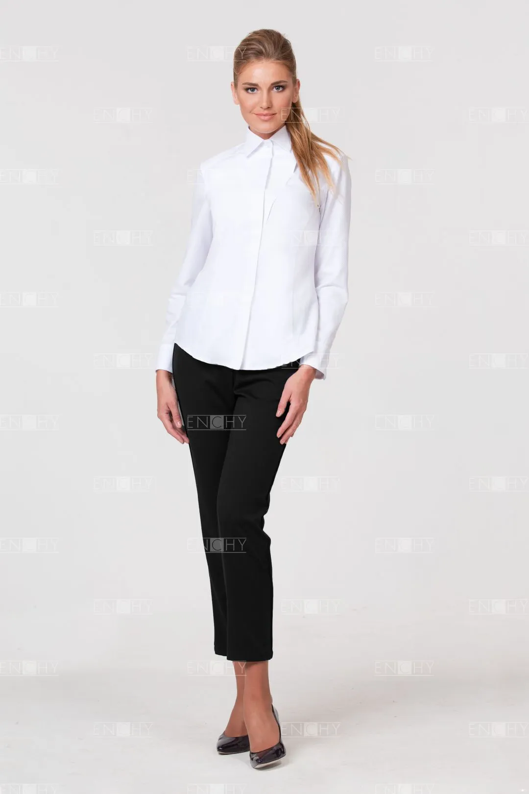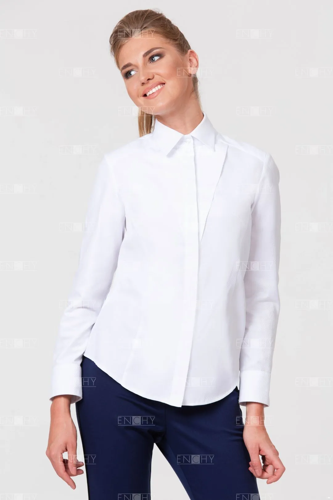Стильная блуза полуприлегающего силуэта с длинным рукавом. Красивые декоративные детали возле супатной застежки создают элегантные геометричные линии в строгом офисном исполнении. Манжета на 2 пуговицы. Удобная длина, притачная кокетка спинки, приталенность и стильный двухшовный рукав создадут неповторимый стиль. Благодаря рельефным швам на переде и спинке создается идеальная посадка по фигуре.