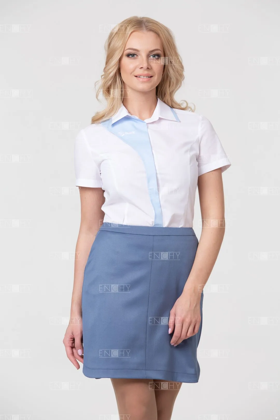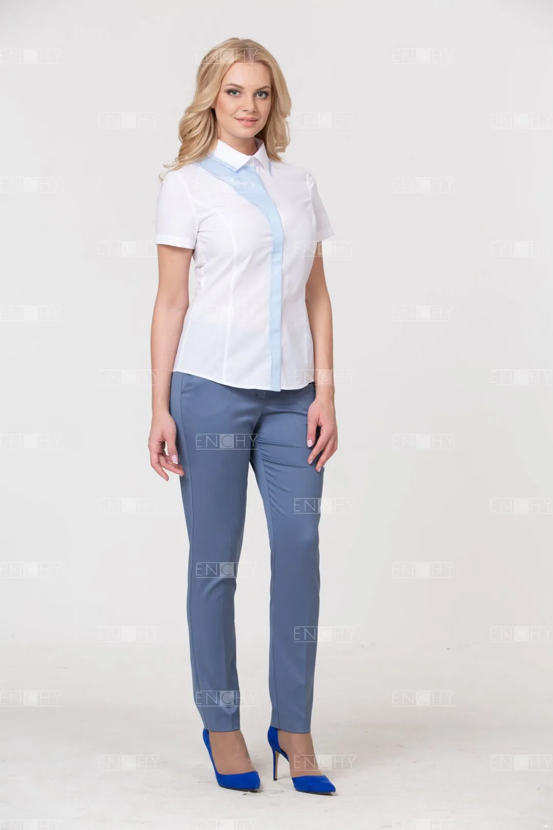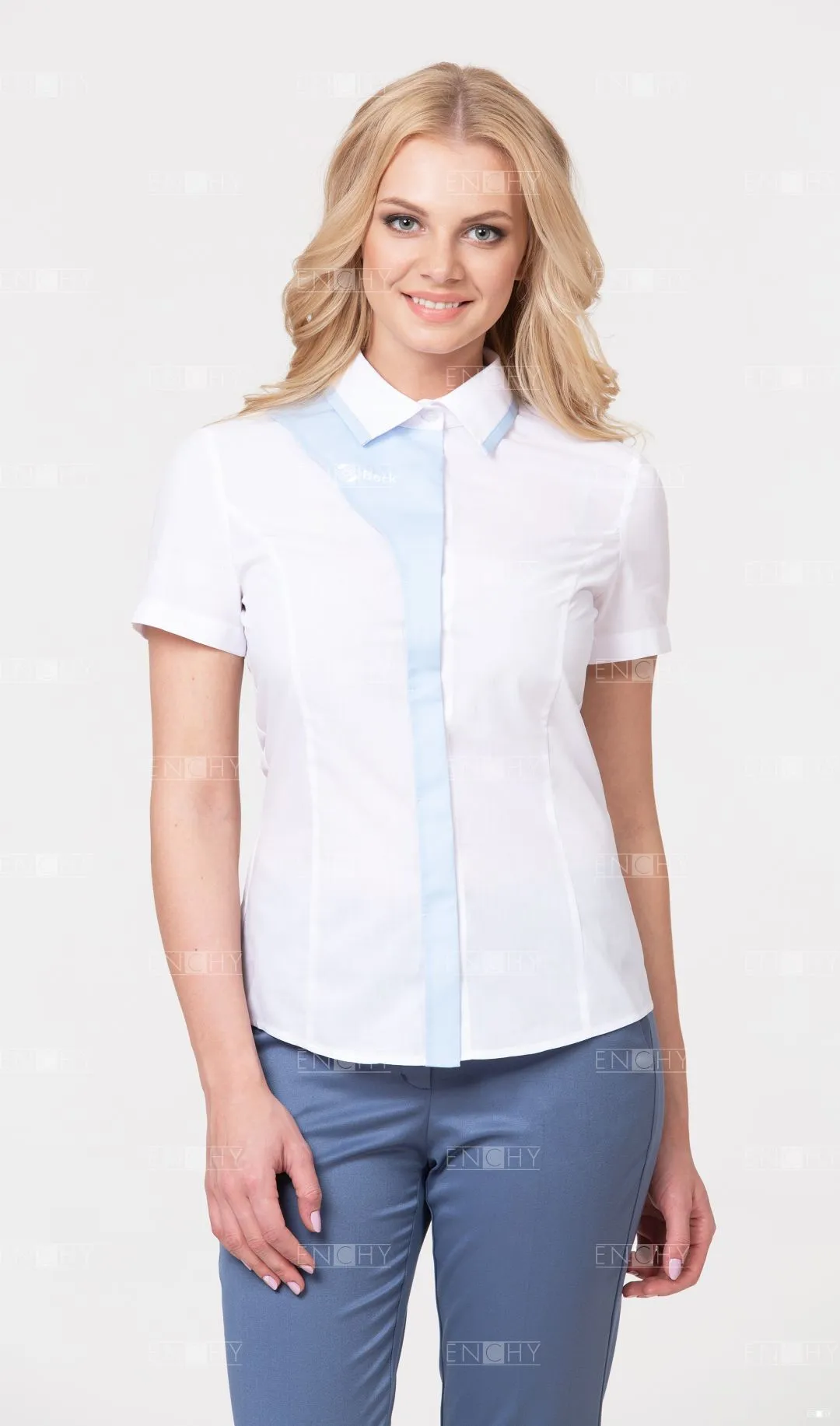 Необычная фигурная супатная застежка этой блузки сделает форму ваших сотрудников уникальной! Небольшая вышивка на этой декоративной детали индивидуализирует образ. Рельефы на переде и спинке обеспечивают отличную посадку по фигуре. На спинке построена притачная кокетка. благодаря множеству декоративных элементов можно создавать разнообразные цветовые решения!