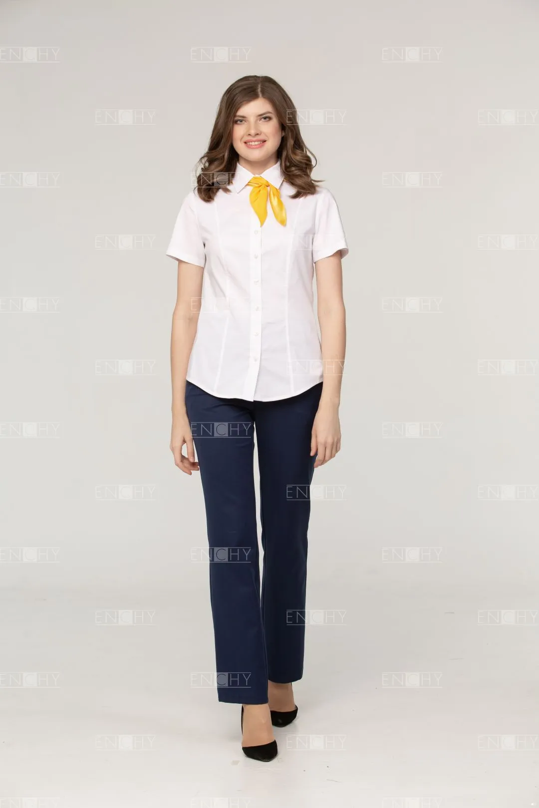 Универсальная блуза для любой фигуры! Благодаря рельефам идеально сидит и великолепно смотрится. Кокетки переда и спинки, отстрочки по швам подчеркивают спортивный стиль. Аккуратный стояче-отложной воротничок выглядит идеально!