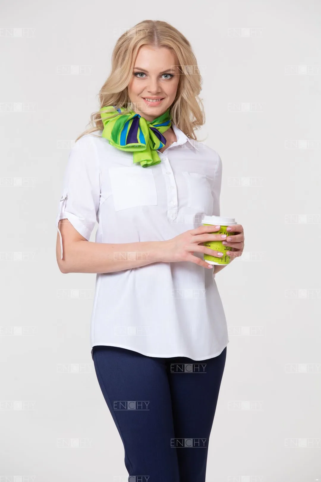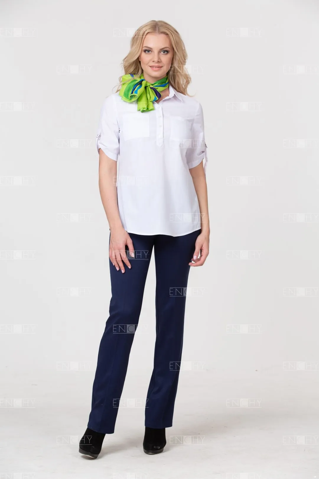 Блузка универсальной длины с воротником и застежкой-поло. Нагрудные вытачки, небольшие нагрудные накладные карманы- отличный расслабленный вариант! Оригинальный рукав фиксируется на пату.