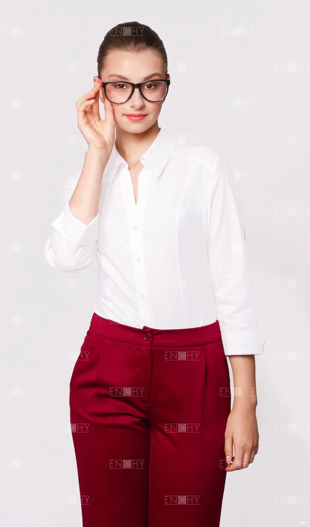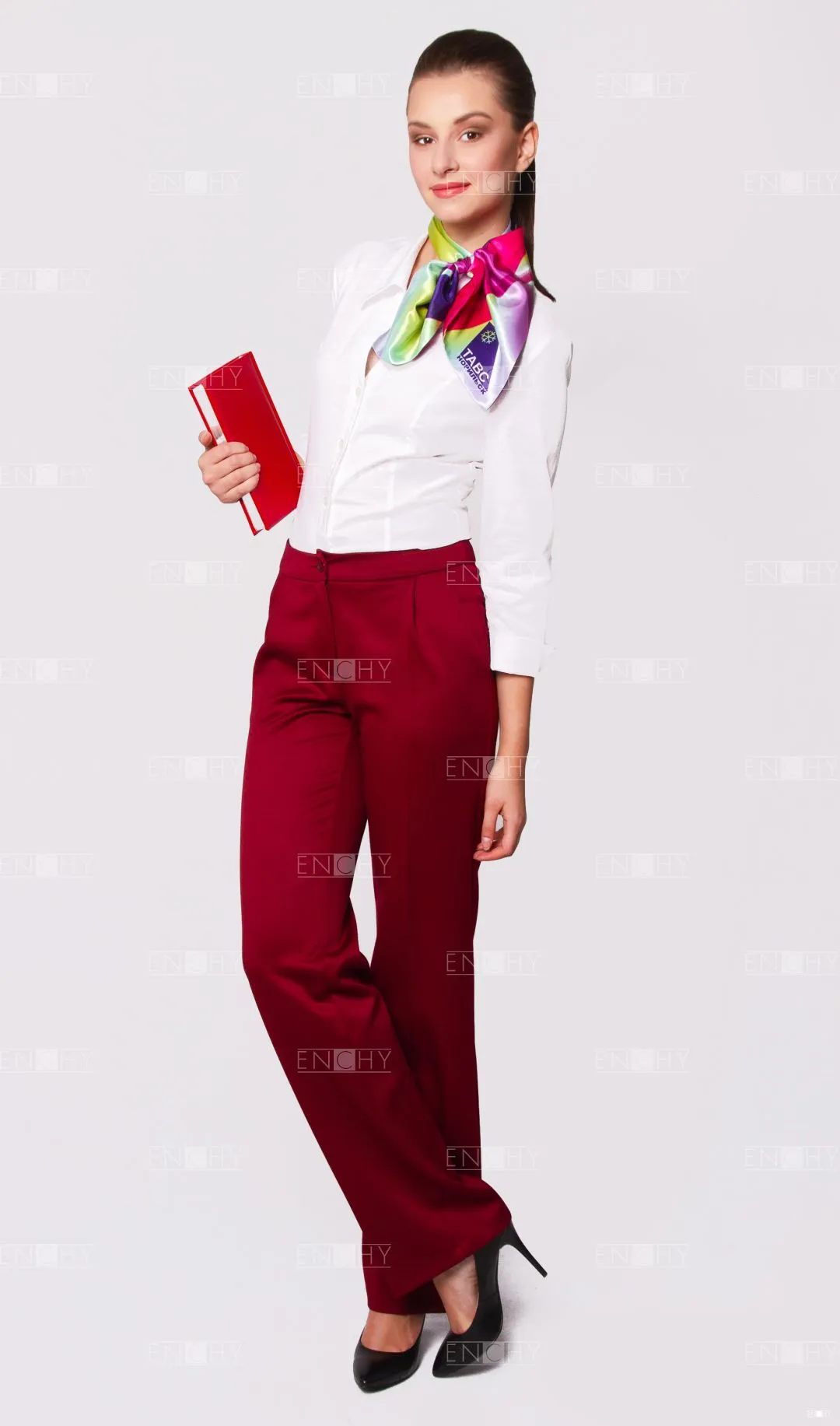 Универсальная модель с кокетками-погонами на переде. Для обеспечения комфортной посадки на переде построены вертикальные рельефы, и талиевые вытачки на спинке. Втачной рукав с отворачивающейся манжетой с разрезом. Воротник с открытой застежкой подчеркнет красивую шею и сделает акцент на корпоративном платке.