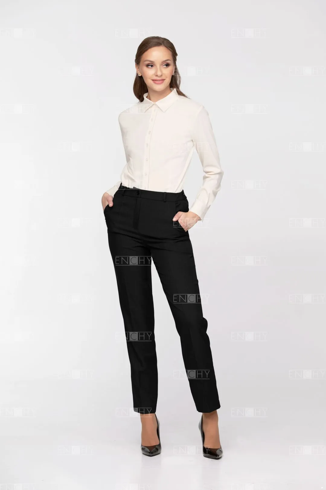 Совершенство - в лаконичности формы. Эта блузка - классика жанра: стояче-отложной воротник, нагрудные и талевые вытачки, длинный рукав с манжетой и застежкой на 1 пуговицу. Около манжеты два защипа. Удобная длина позволяет носить блузку как заправленной, так и на выпуск. Летний вариант - блуза с коротким рукавом Арт.9047.