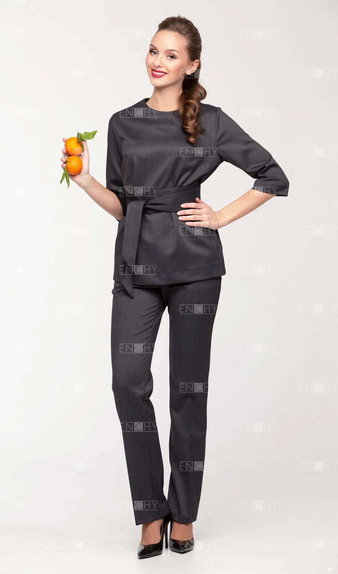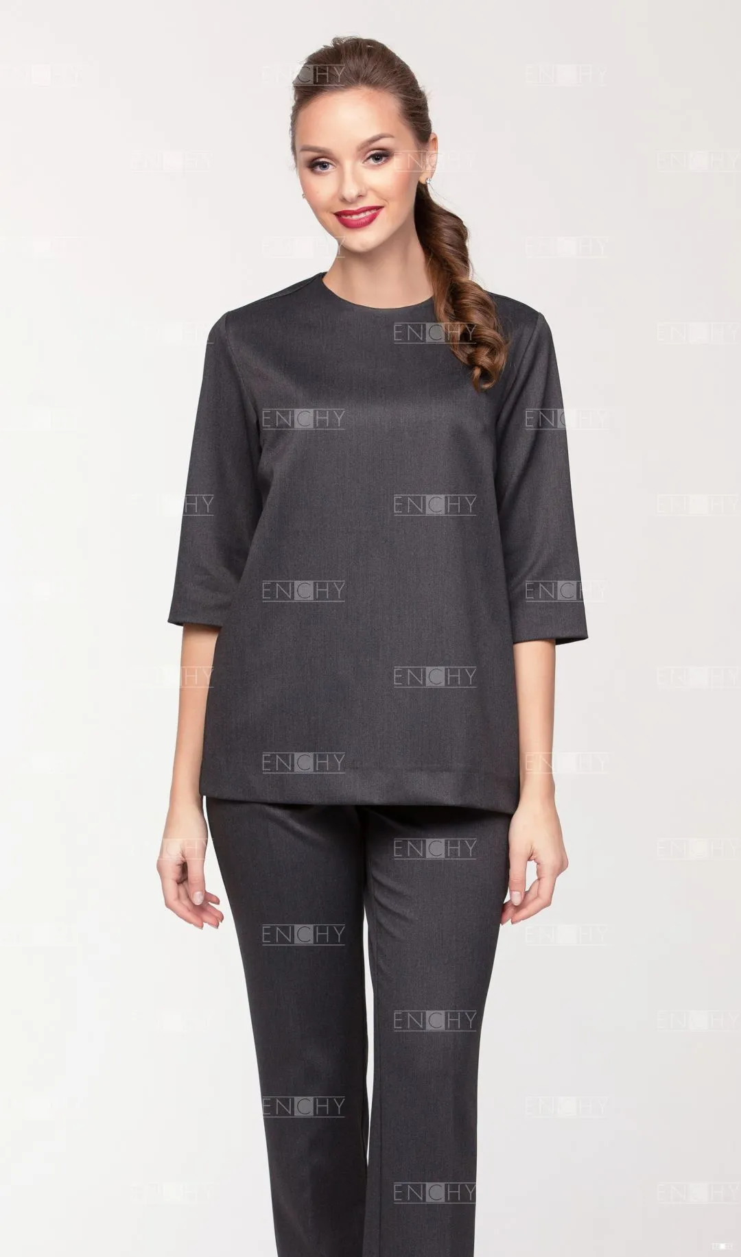 Актуальная минималистичная удлиненная туника слегка расширенна к низу. Рукав до линии локтя, нагрудные вытачки, овальная горловина, застежка на спинке на 2 пуговицы. Тунику можно носить как с поясом, так и без, который идет в комплекте, тем самым создавая приталенный силуэт. Для больших размеров предусмотрены рельефные швы вместо вытачек.