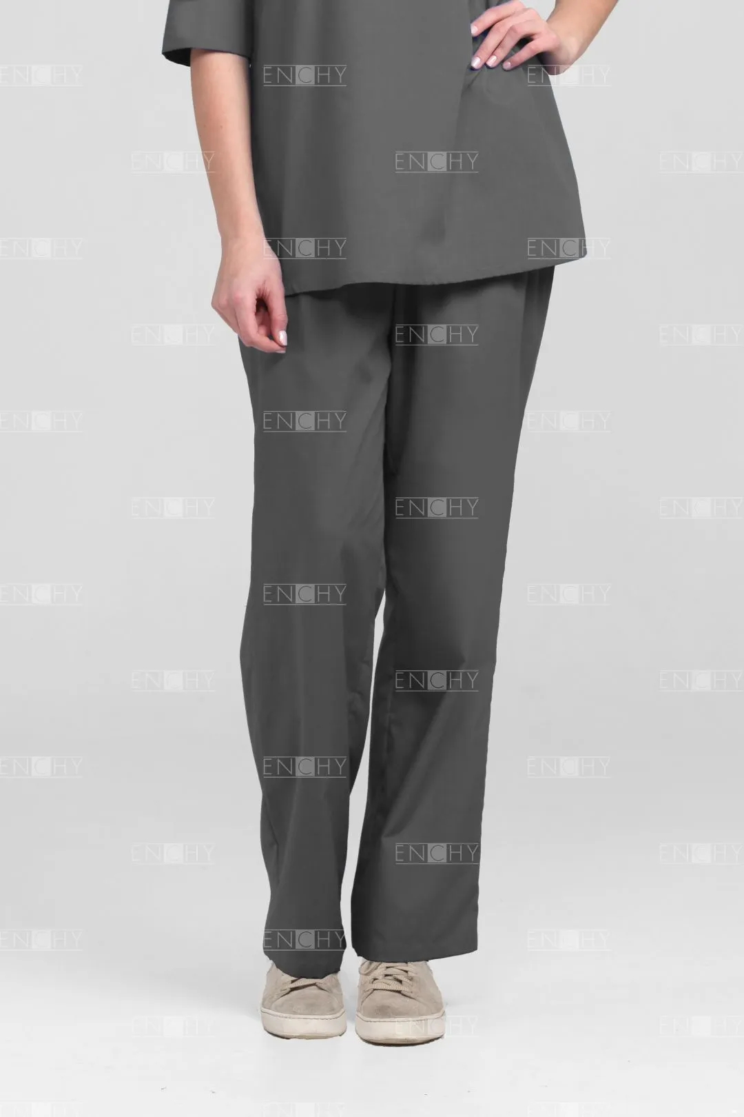 Брюки рабочие: свободные брюки с посадкой на талии. Верхний край брюк с широким поясом, в который вставлены два ряда резинок.