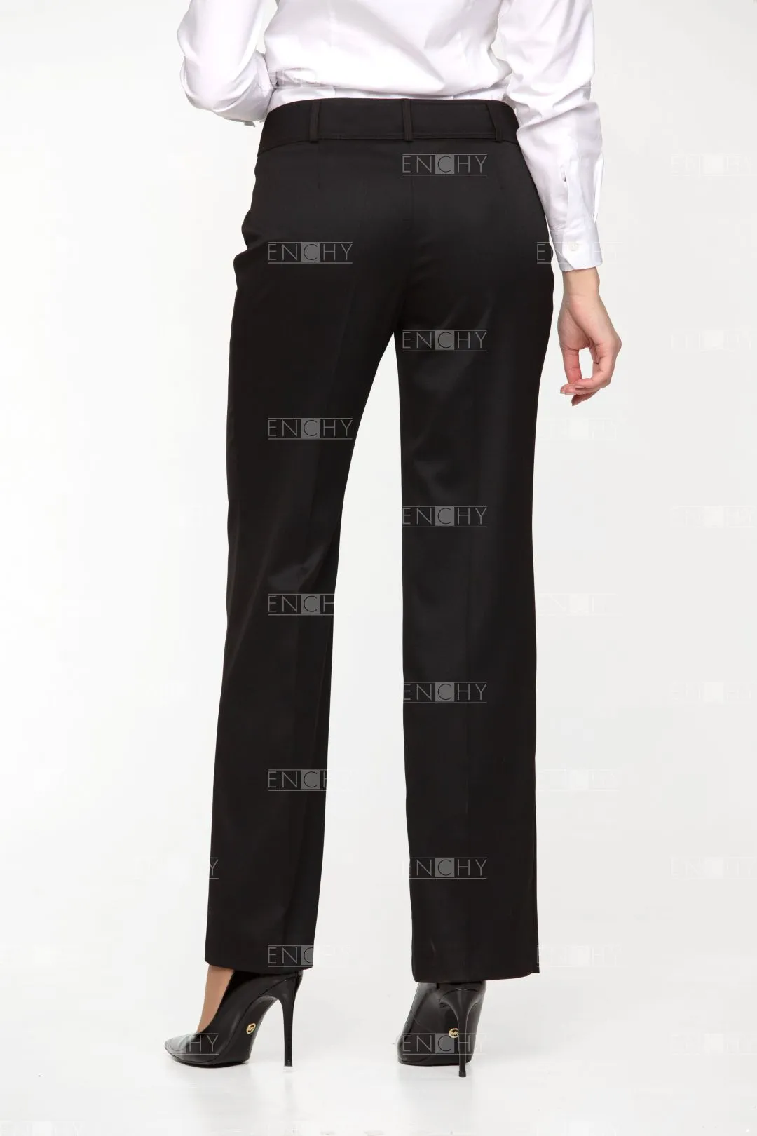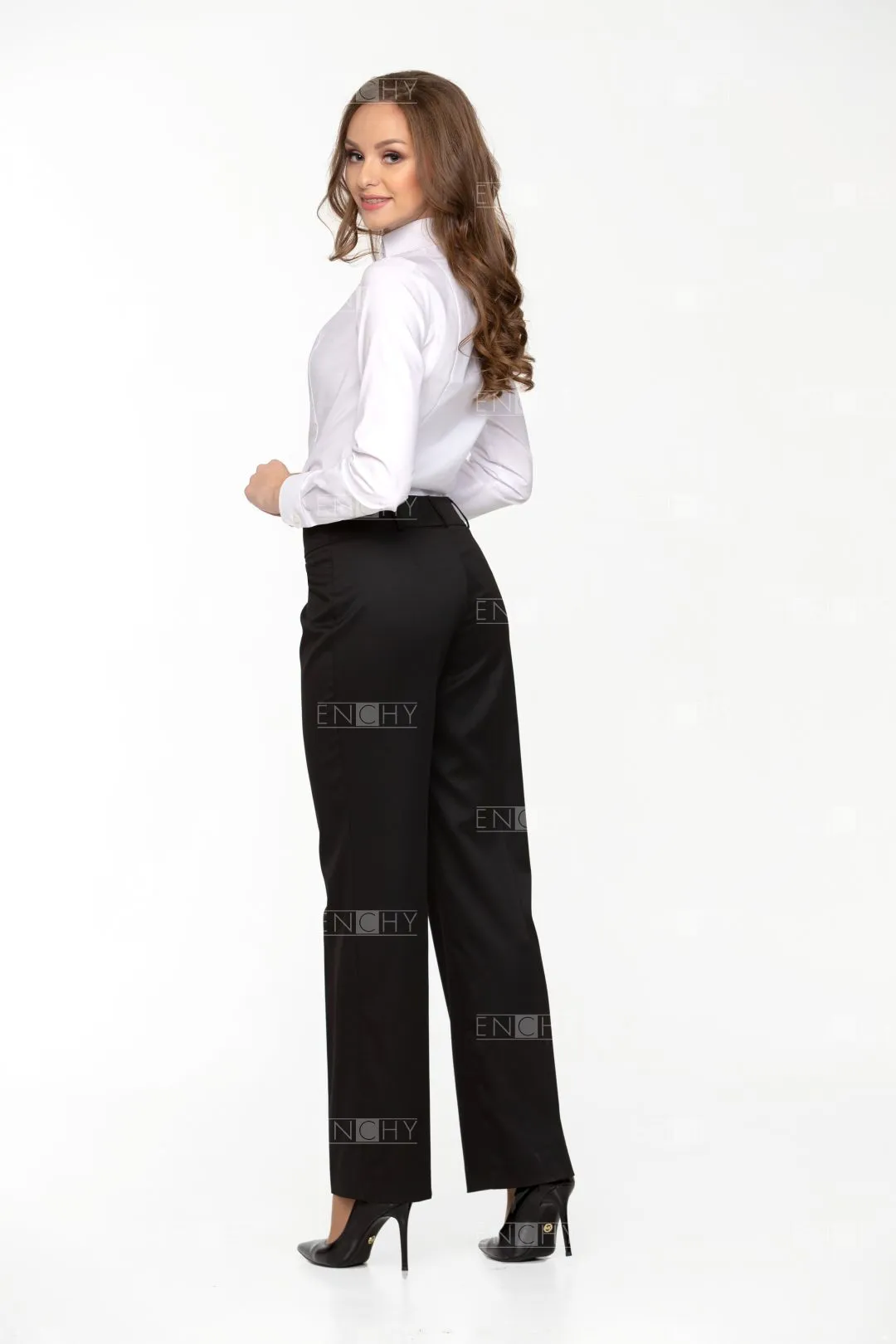 Эти стильные прямые брюки актуальной ширины подойдут для любой комплекции! Широкий пояс шириной 5,5 см со строчками, шлевки, застежка на 2 пуговицы и гульфик. Удобная, средняя посадка. Спереди имитация карманов-кокеток - это деталь, которая придает модели пикантность.