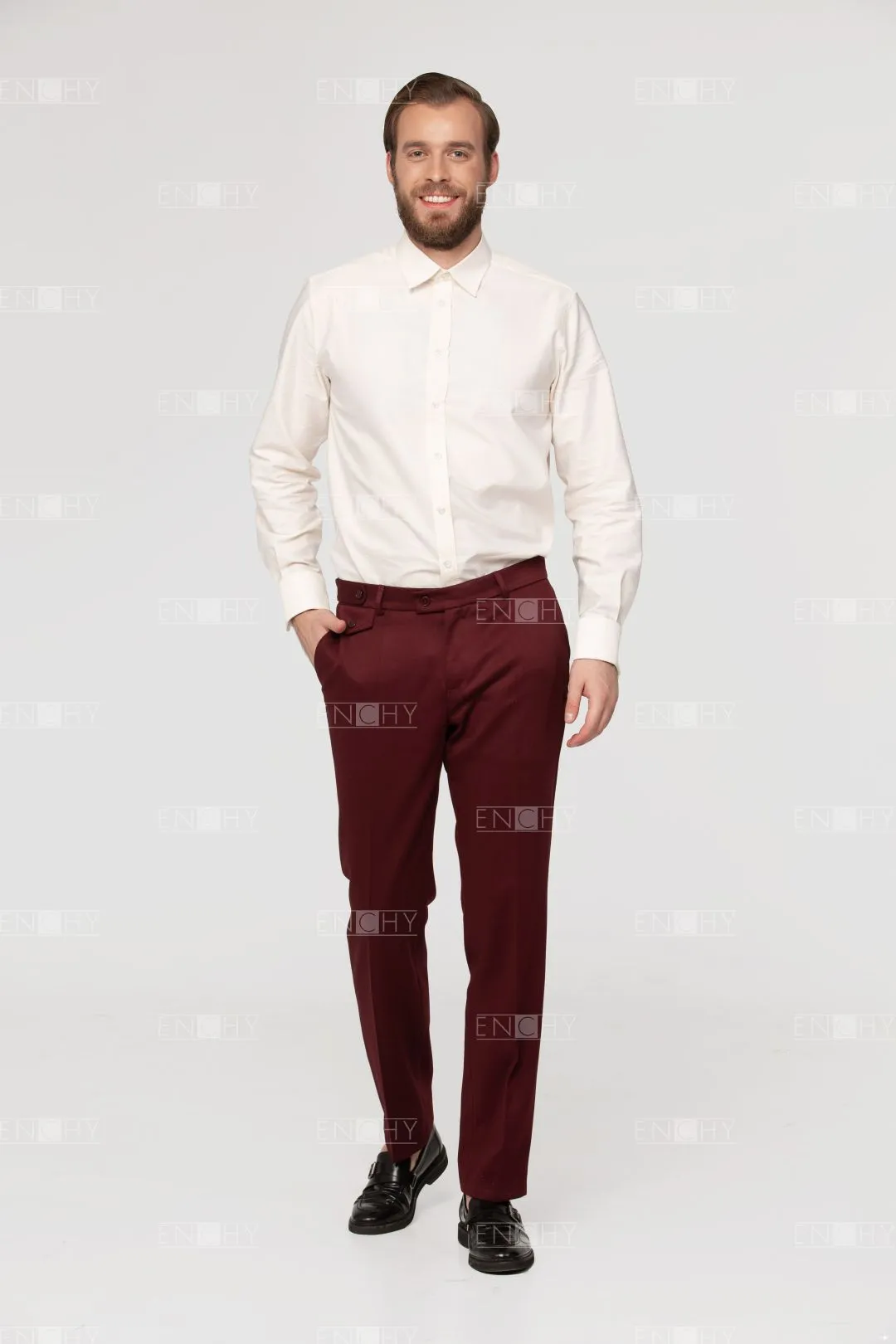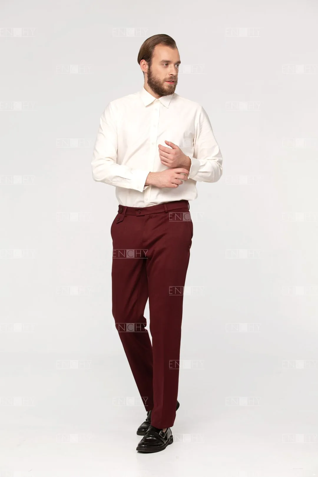 Мужские брюки актуальной модной формы по достоинству оценят сотрудники молодого коллектива. Боковые карманы спереди, сзади два прорезных кармана в рамку и застежкой на пуговицу. Пояс декорирован клапаном с пуговицей и патой.