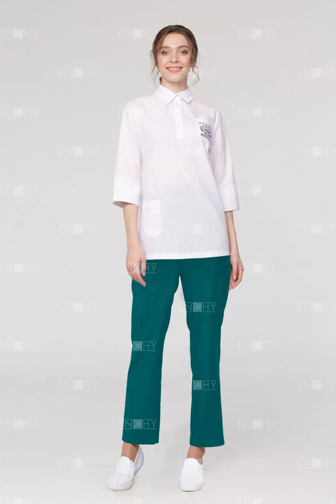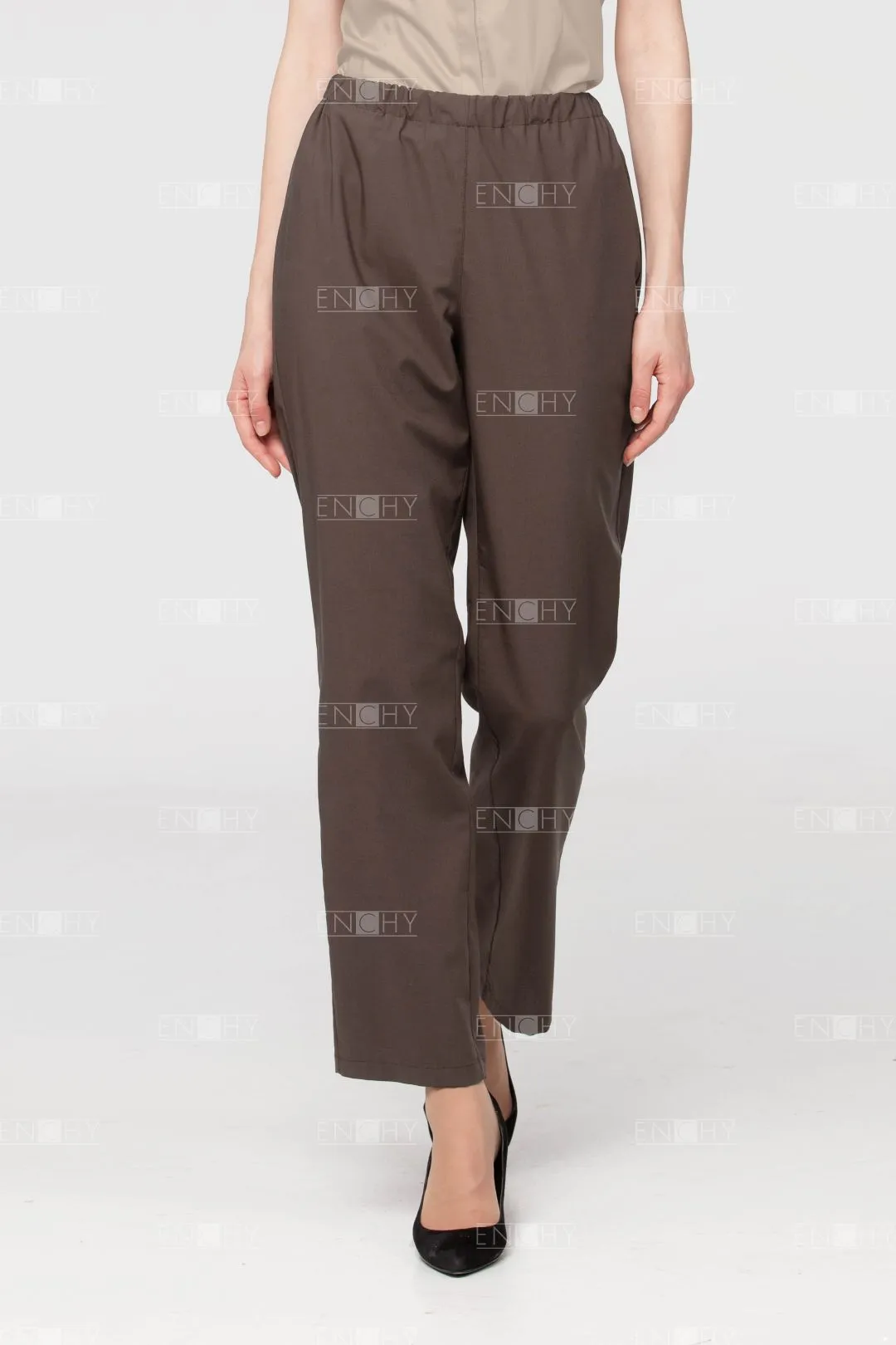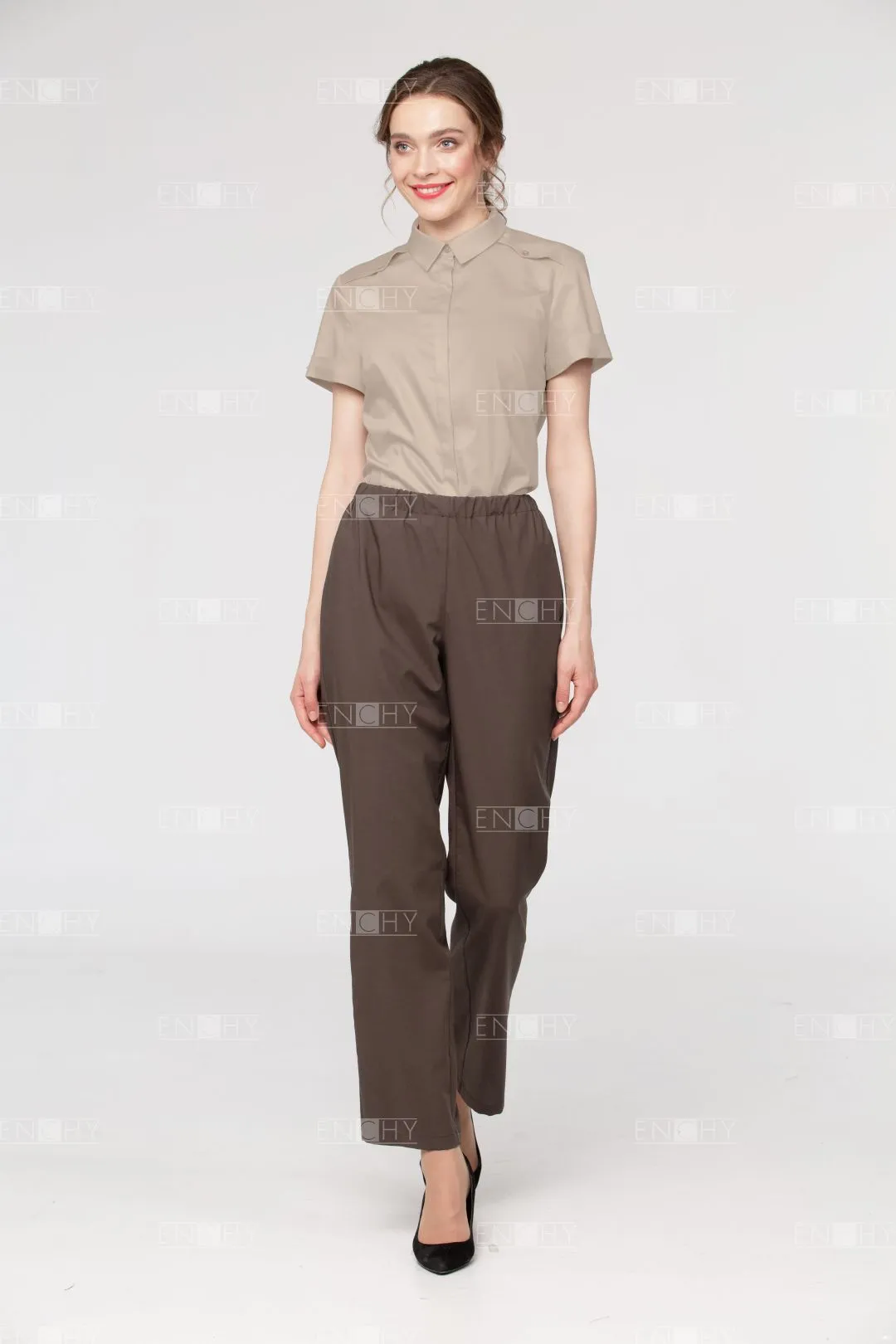 Брюки женские отлично подойдут для подвижной работы. Пояс на резинке, заужены к низу.