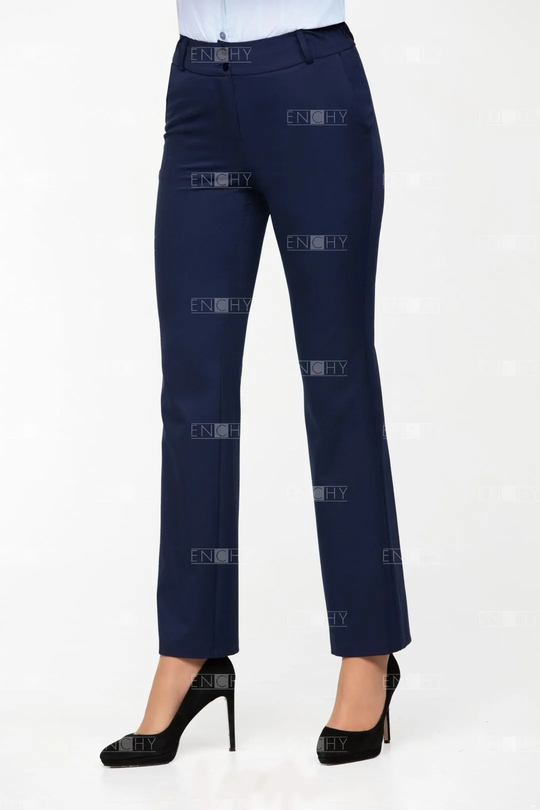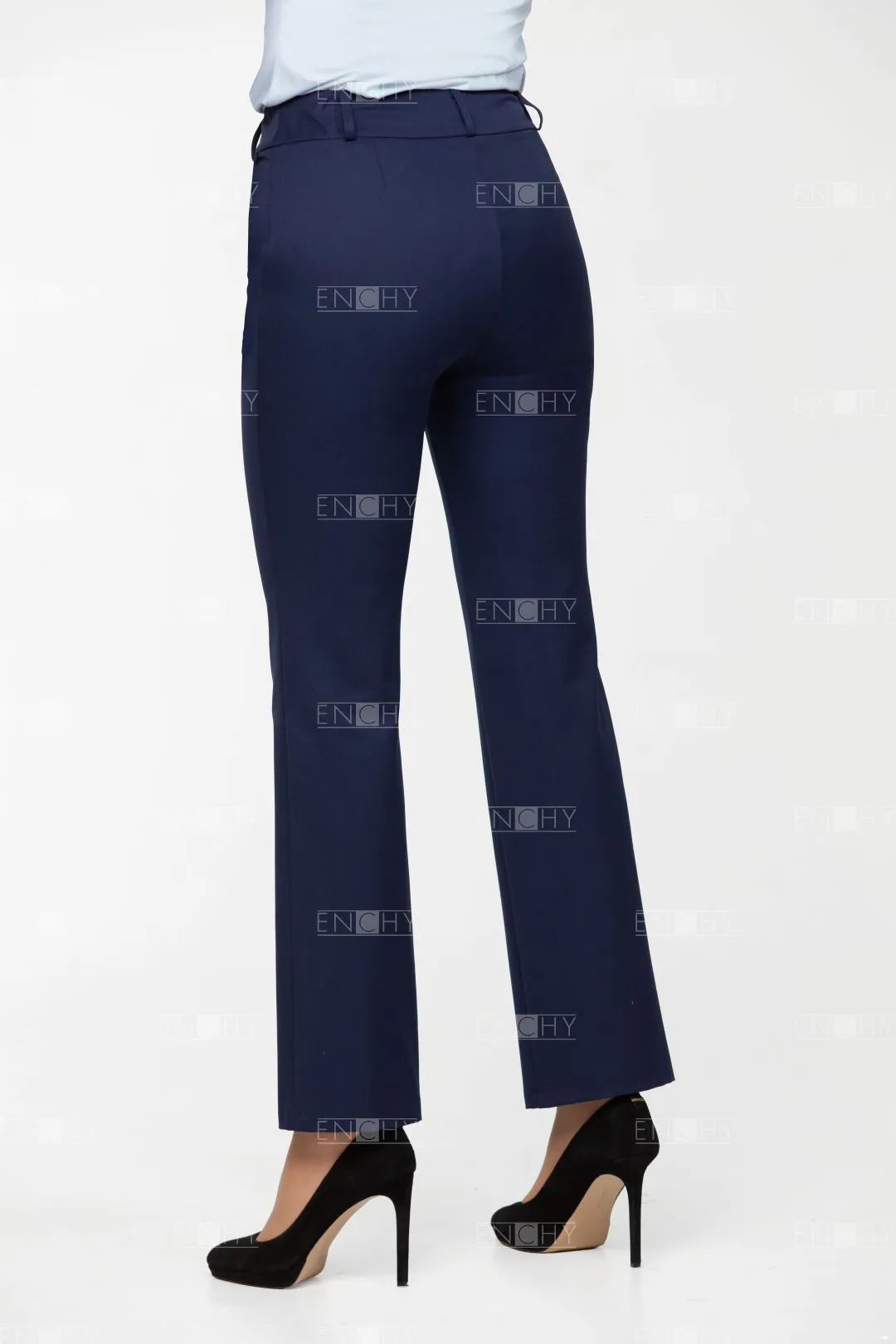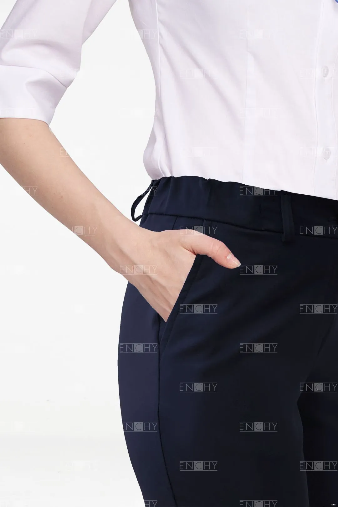 Прямые брюки модного кроя без стрелок- отлично сидят на разных фигурах. Карманы в отрезном бочке. Брюки со средней посадкой, на нешироком поясе. По бокам на поясе резинка.