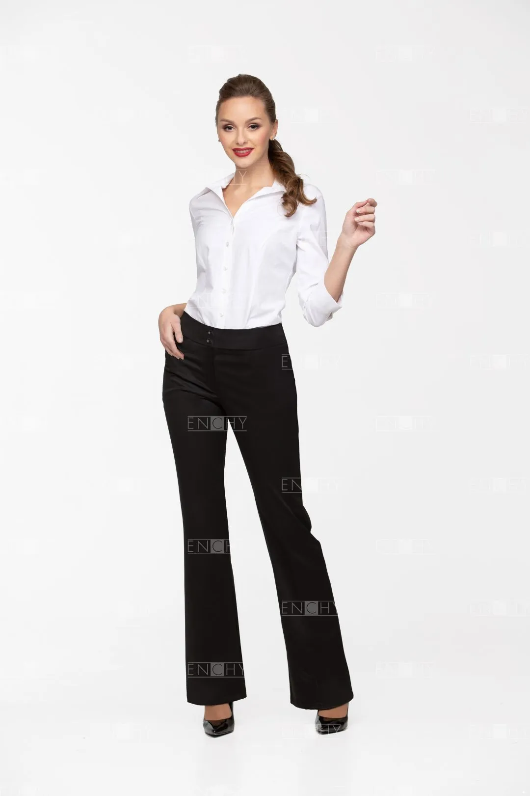 Мода меняется, и брюки клеш вновь врываются на модные подиумы! Особенно актуально выглядит сочетание таких брюк с простыми базовыми вещами, например свободной блузой на мужской манер.