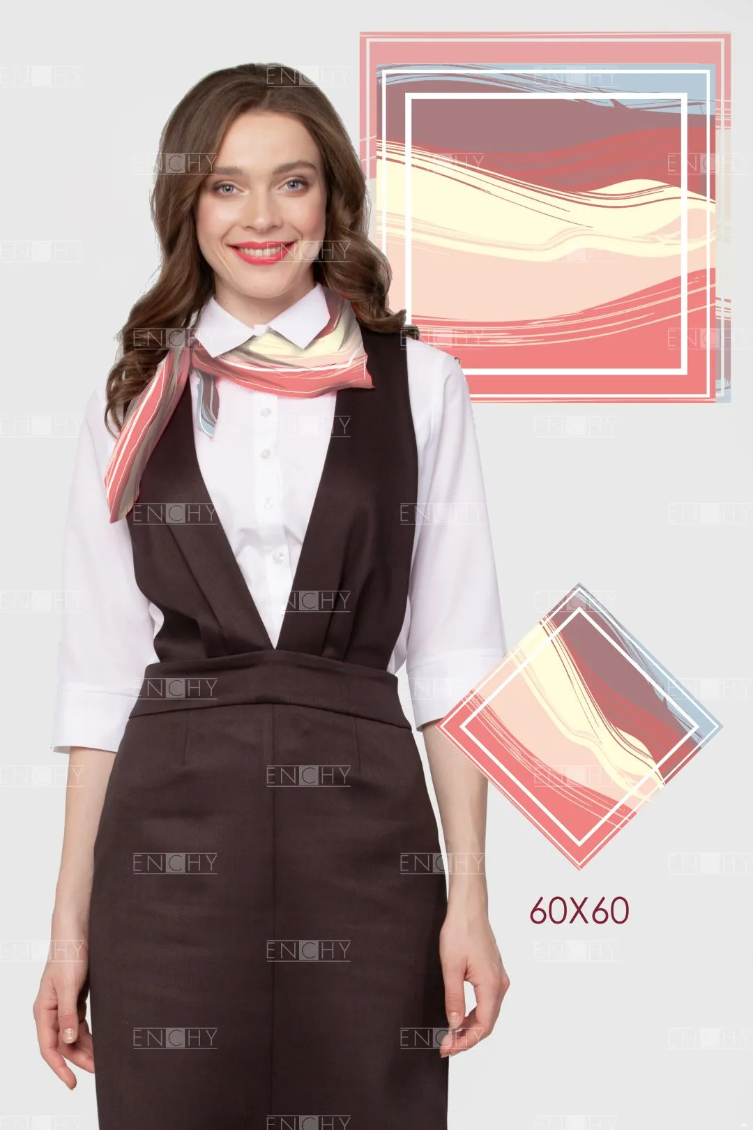 Цвет принта платка может быть любым, в соответствии с вашим корпоративным стилем и пожеланиями. Также в этот дизайн можно добавить ваш логотип.