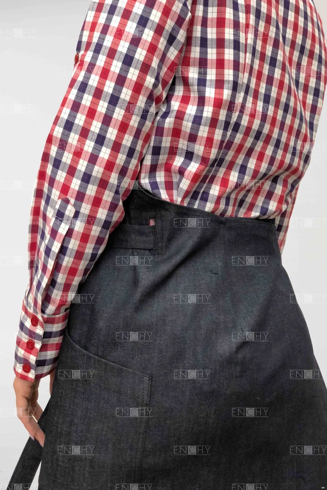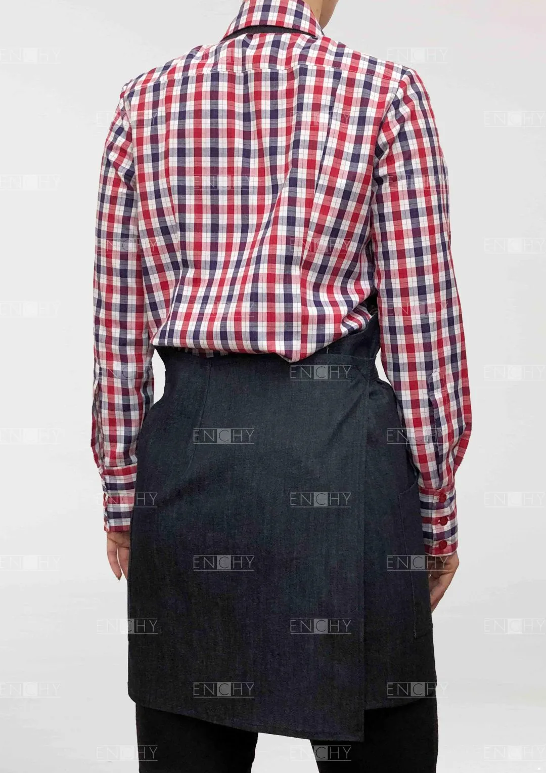 Удобный фартук с полным запахом сзади. На переде два накладных кармана с наклонным входом, сзади вытачки для лучшего прилегания по спинке, регулируемая бретель через шею. Пояс фартука завязывается спереди.
