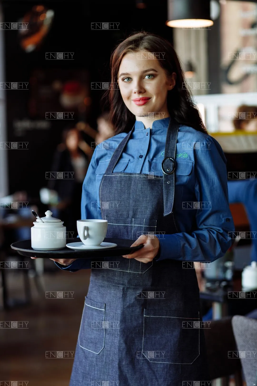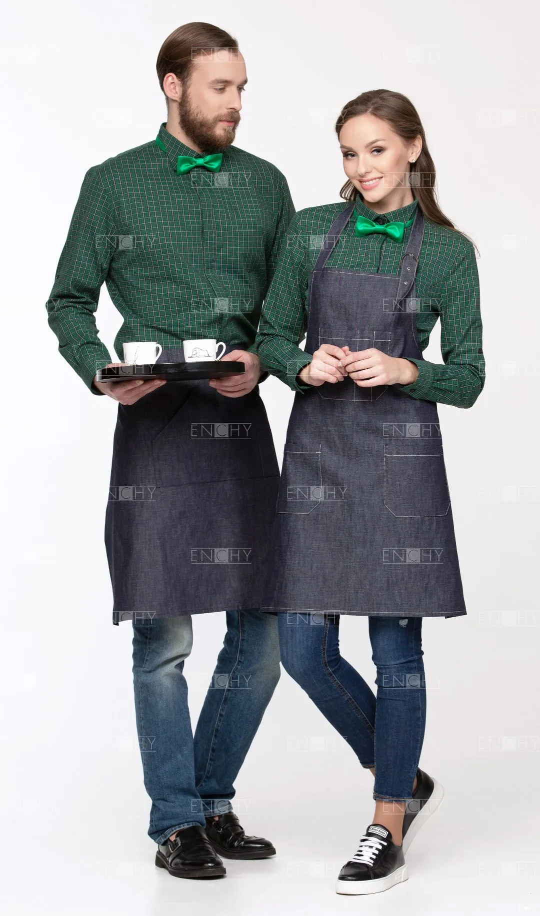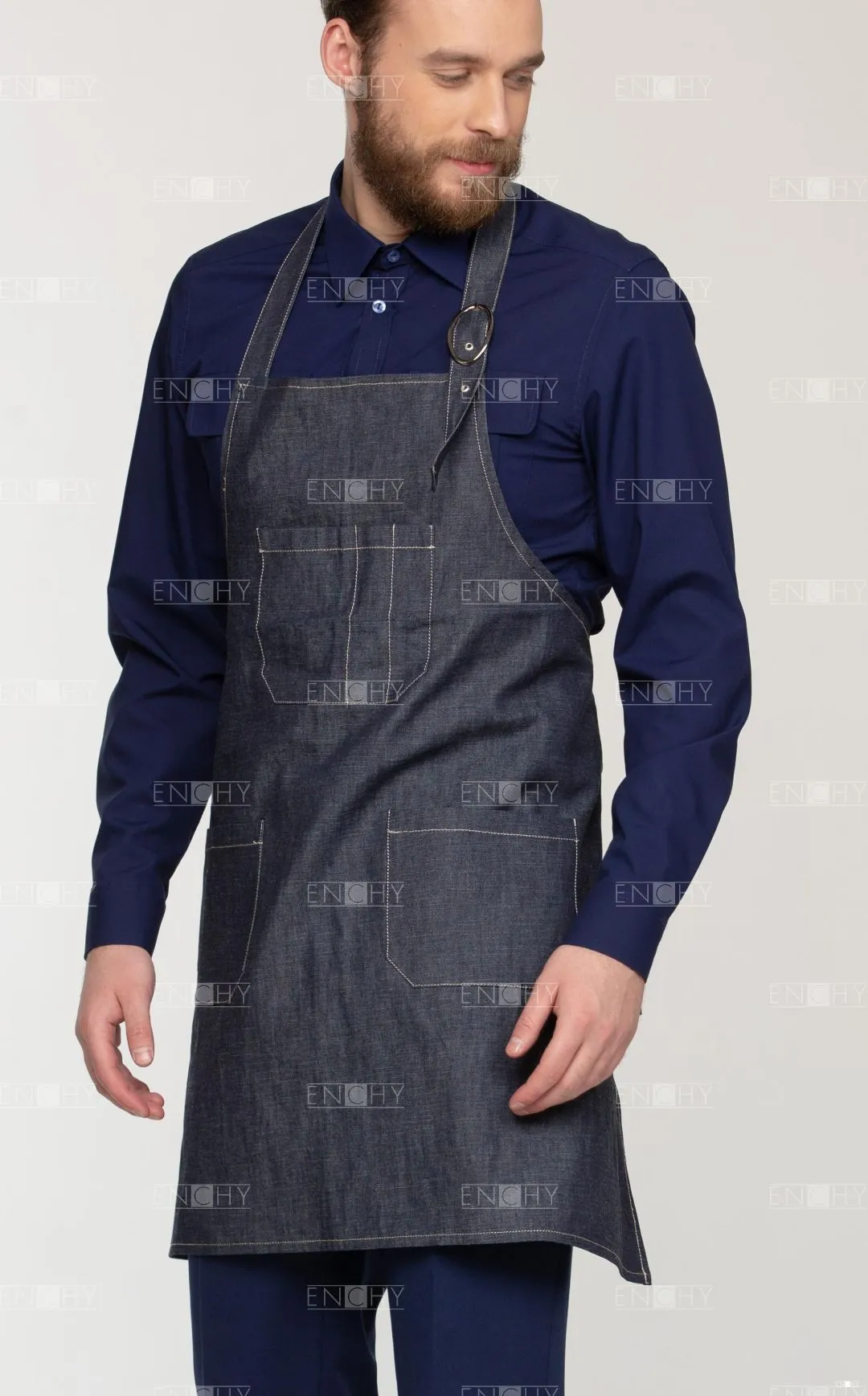 Фартук с нагрудным накладным карманом с 3 секциями, и двумя боковыми вместительными карманами. Фартук завязывается сзади на пояс. Бретель на шее регулируется пряжкой. Пояса можно изготовить, используя ваш фирменный цвет.
