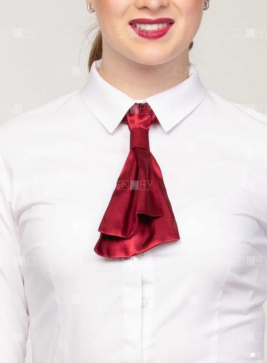 Мягкий галстук длиной 19 см. Прямоугольное полотно со скрошенными краями перекидывается через подвижный узел. Крепится галстук на облачную ленту, застегивающуюся на две петли-пуговицы, так же для регулировки есть 2 рад пуговиц. Указанная цена - на галстук из однотонной ткани.