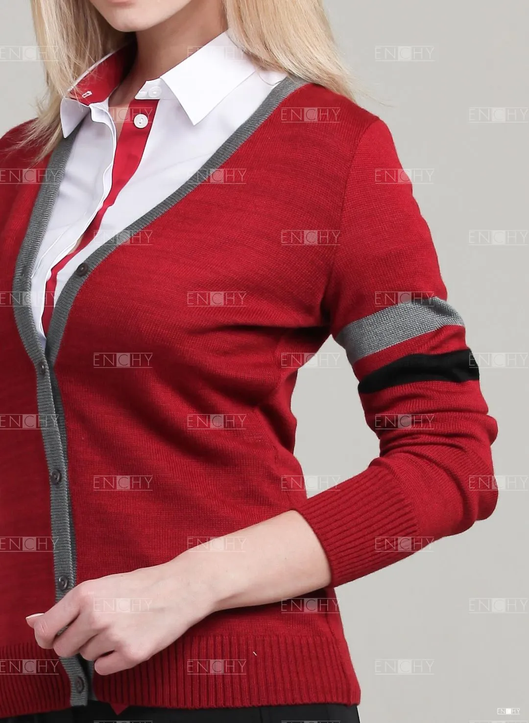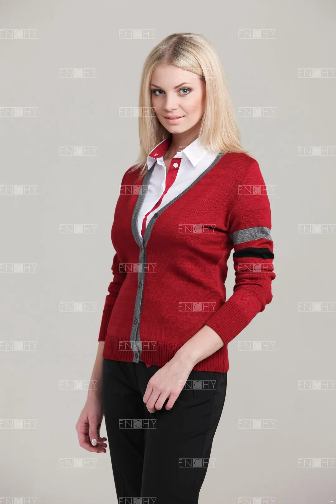 Законченный корпоративный образ создаст кофточка удобного простого кроя, которая подойдет для любой фигуры! В локальном цвете кофточка создает элегантный стиль, женственный и универсальный. А если поиграть с полосками на рукаве, выполнить планку застежки в контрастном цвете - получится яркий стиль для молодых сотрудников ярких высокотехнологичных компаний.