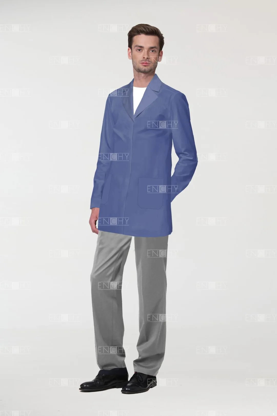 Мужской халат с потайной застежкой и воротником с отворотами лацканов. Перед с накладными карманами, спинка с кокеткой, и шлицей в среднем шве.