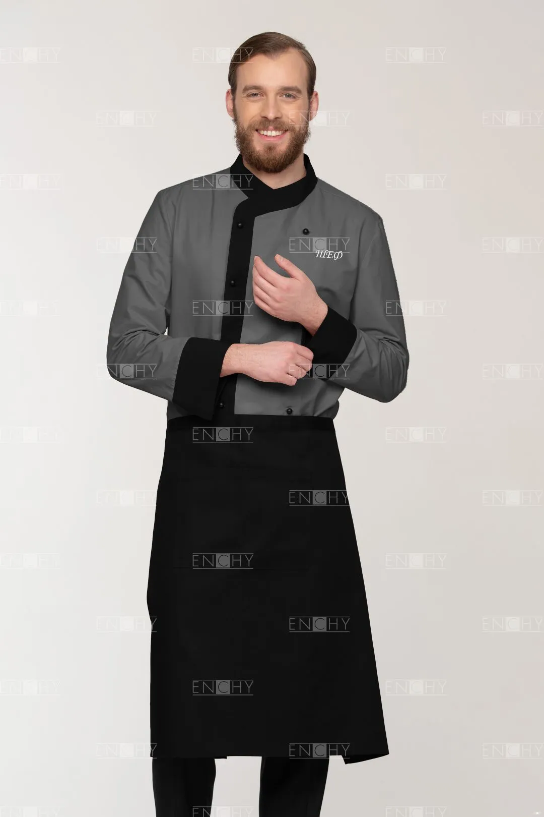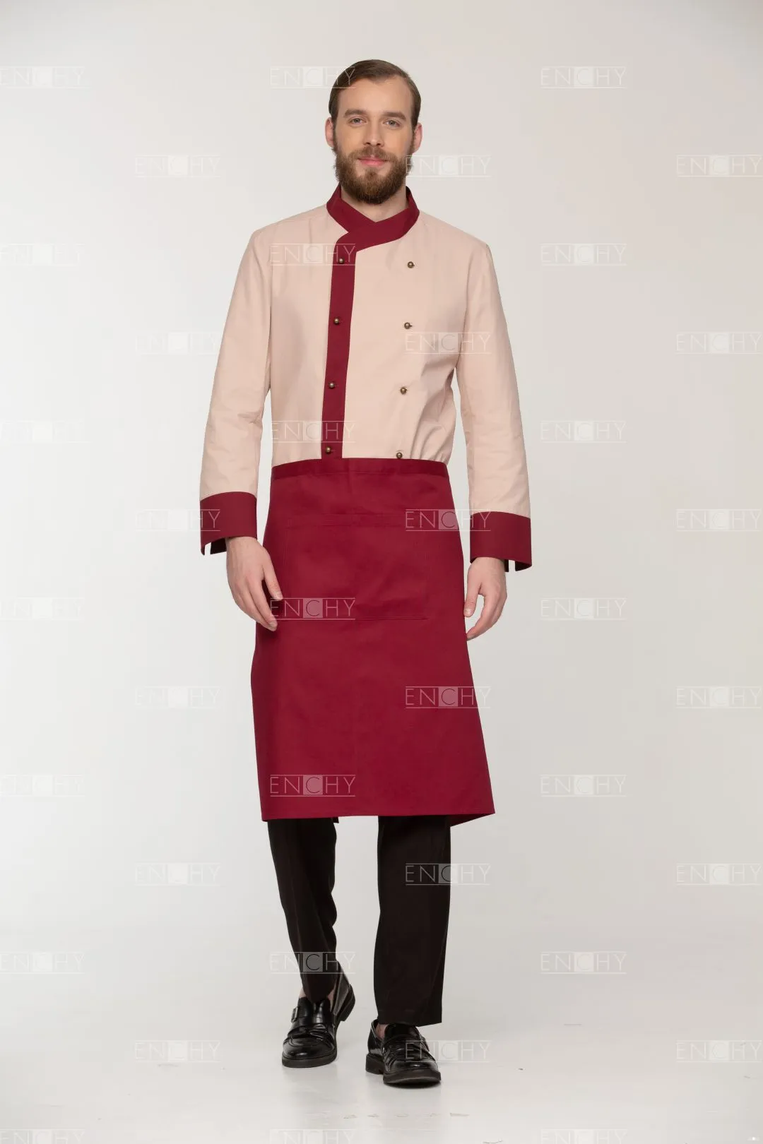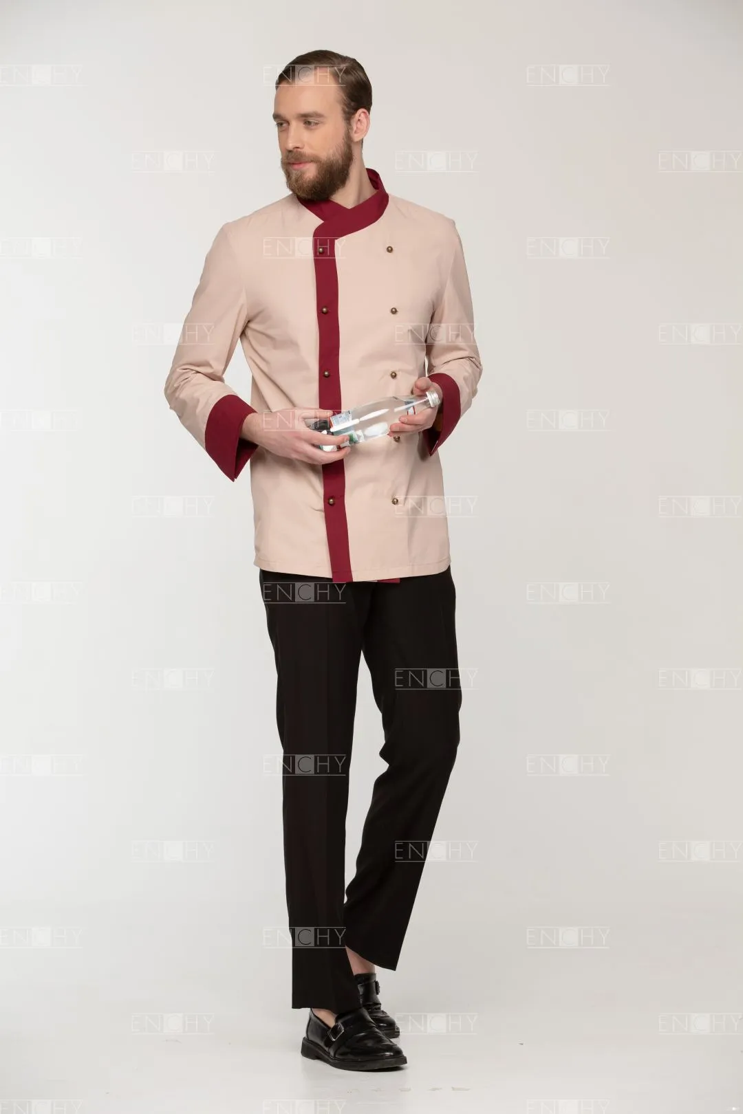 Стильный минималистичный китель с классической двубортной застежкой на пукли и широкой бейкой по краям борта, переходящий в стойку.
