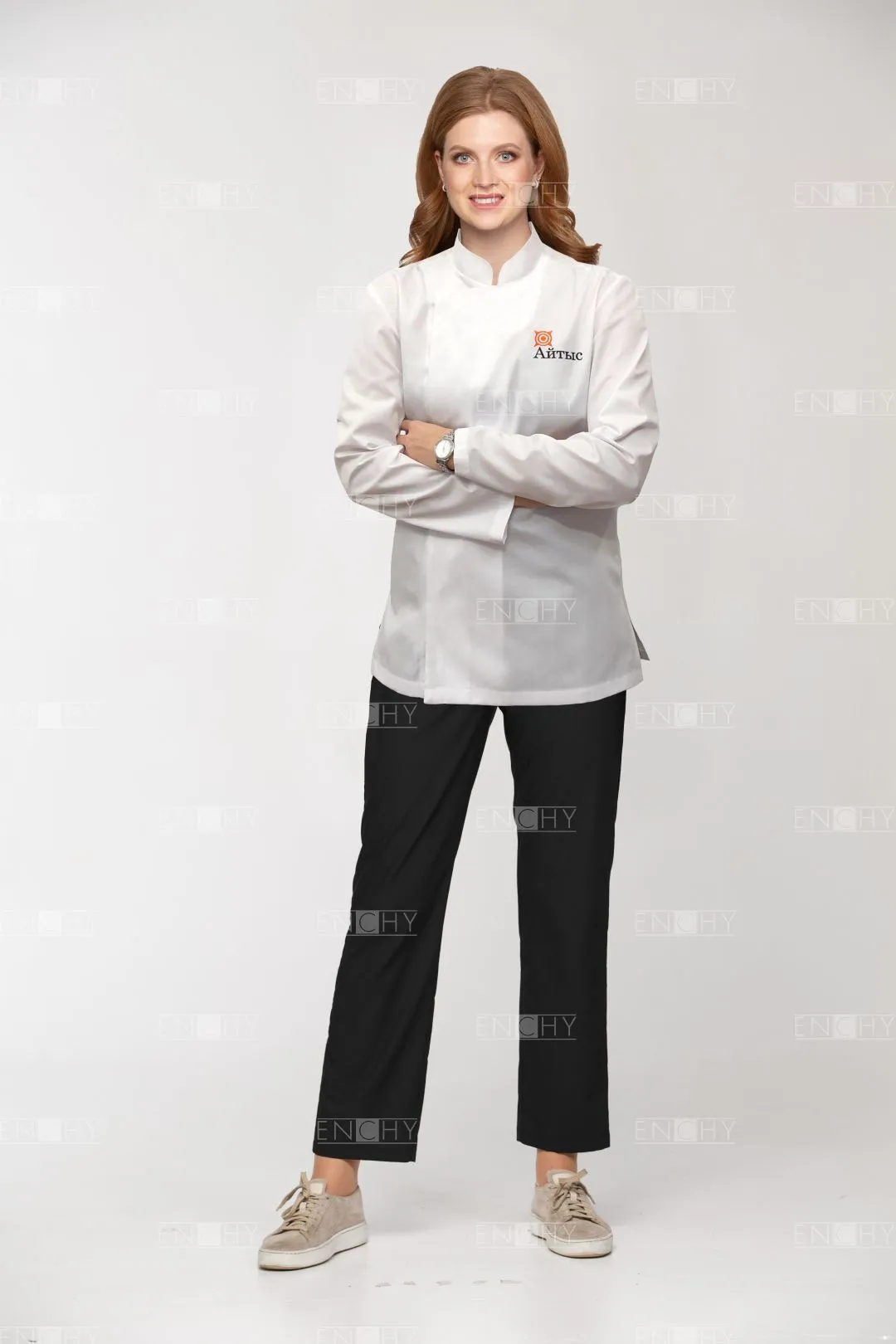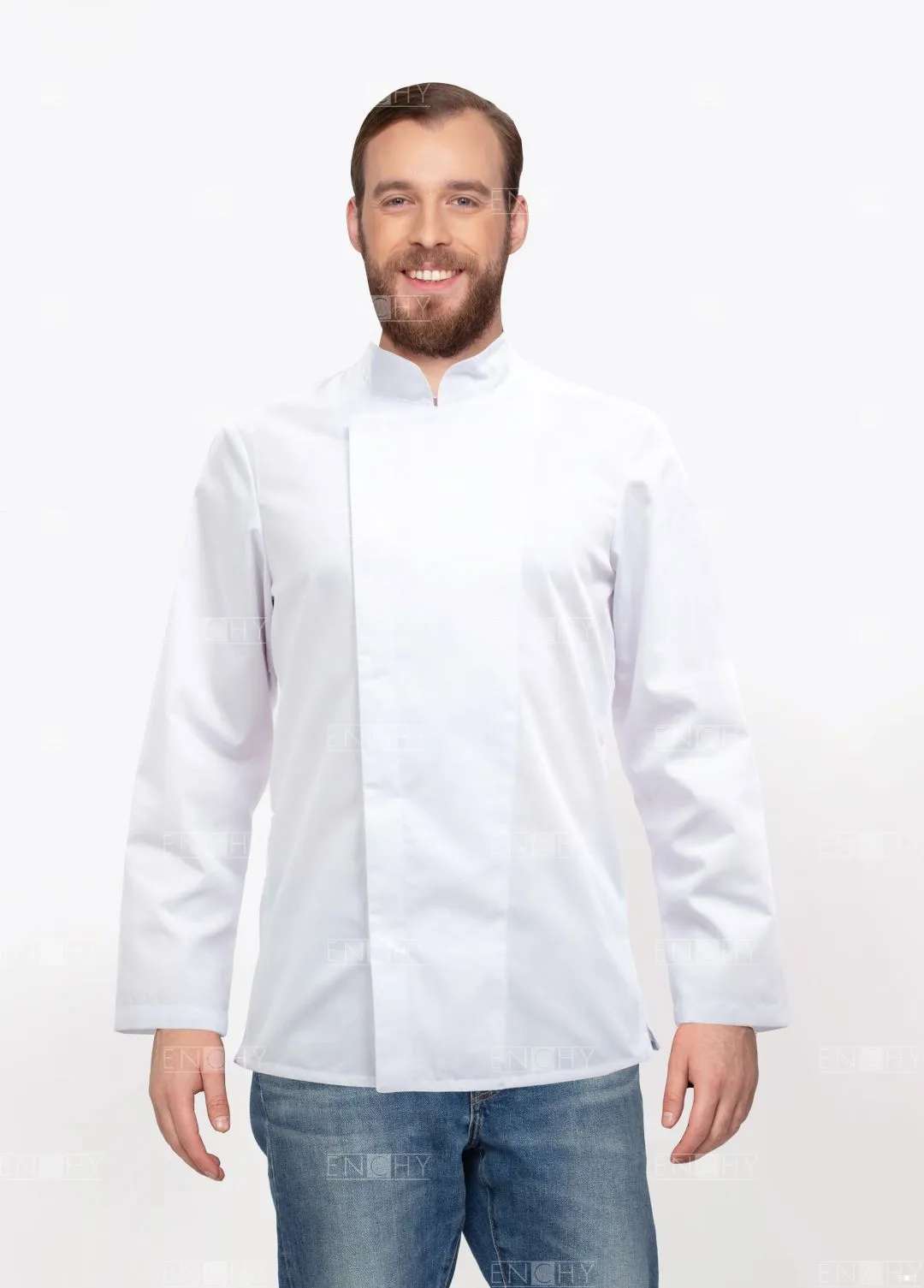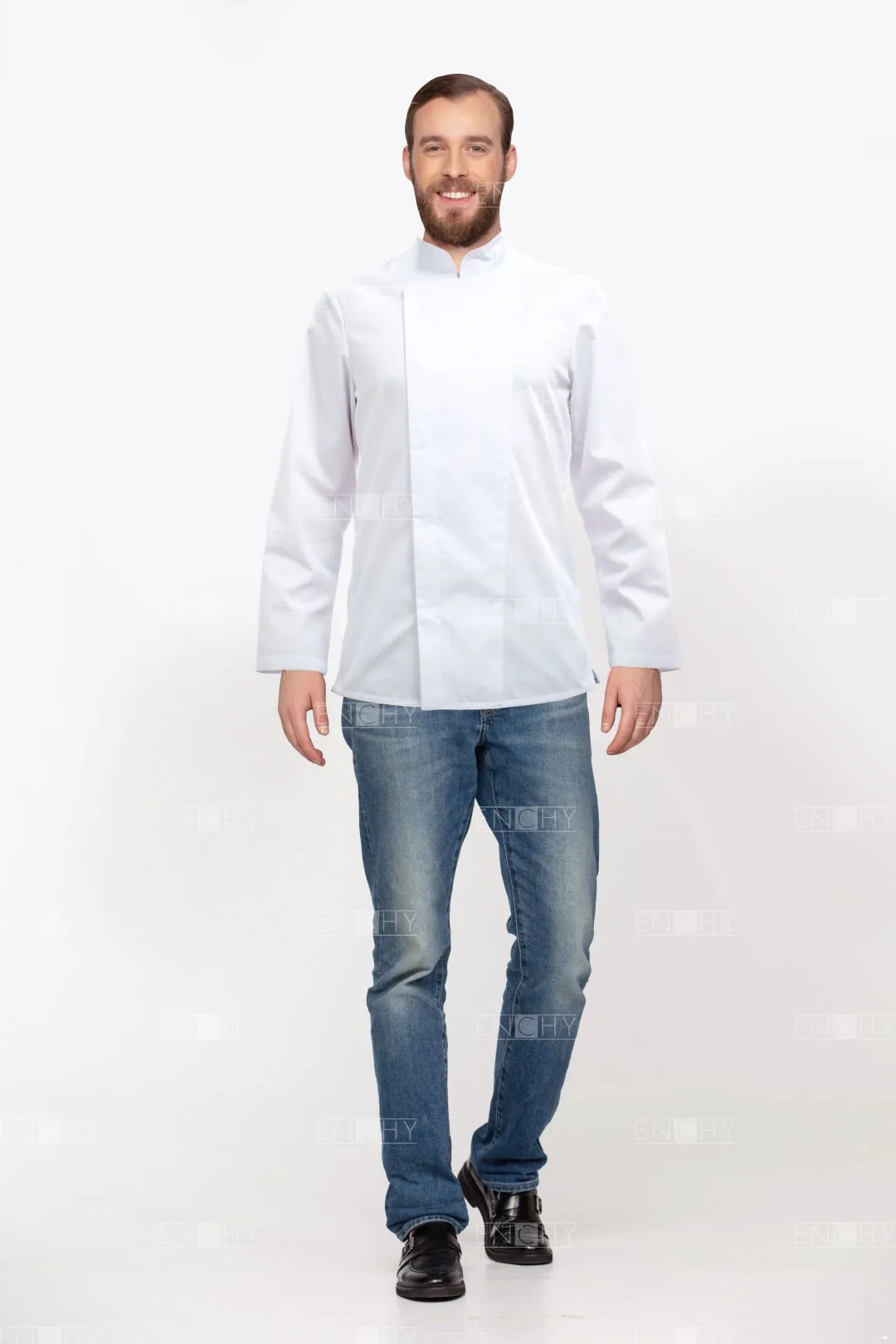 Стильный минималистичный китель унисекс на кнопках с длинным рукавом. Воротник стойка, разрезы в боковых швах.
