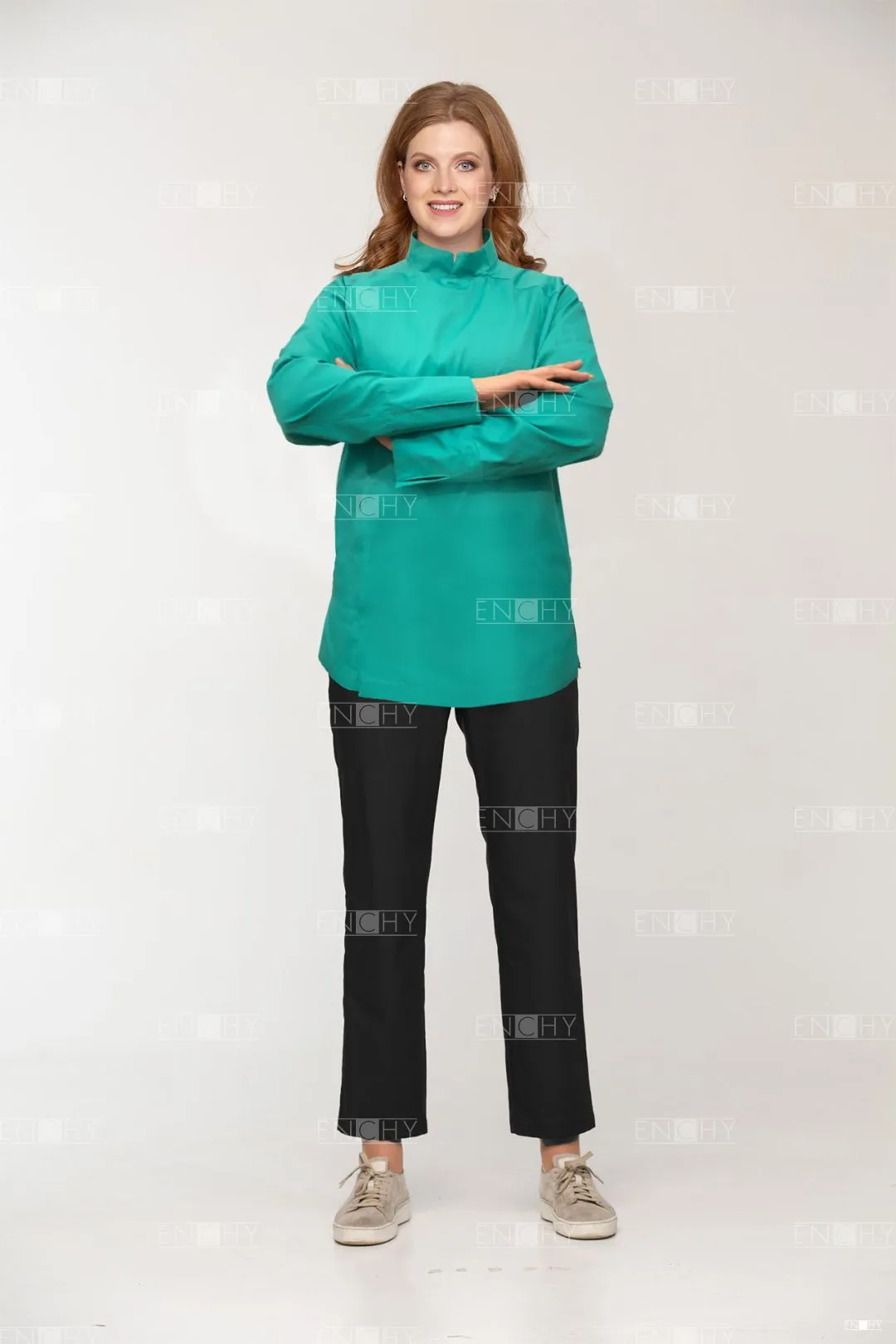 Китель небольшого объема на внутренних кнопках. Подойдет как мужчине, так и женщине. Слегка укорочен рукав. Стильный дизайн и современный крой украсят персонал и подчеркнут ваш фирменный стиль.