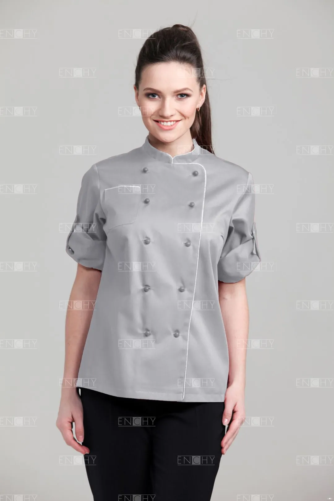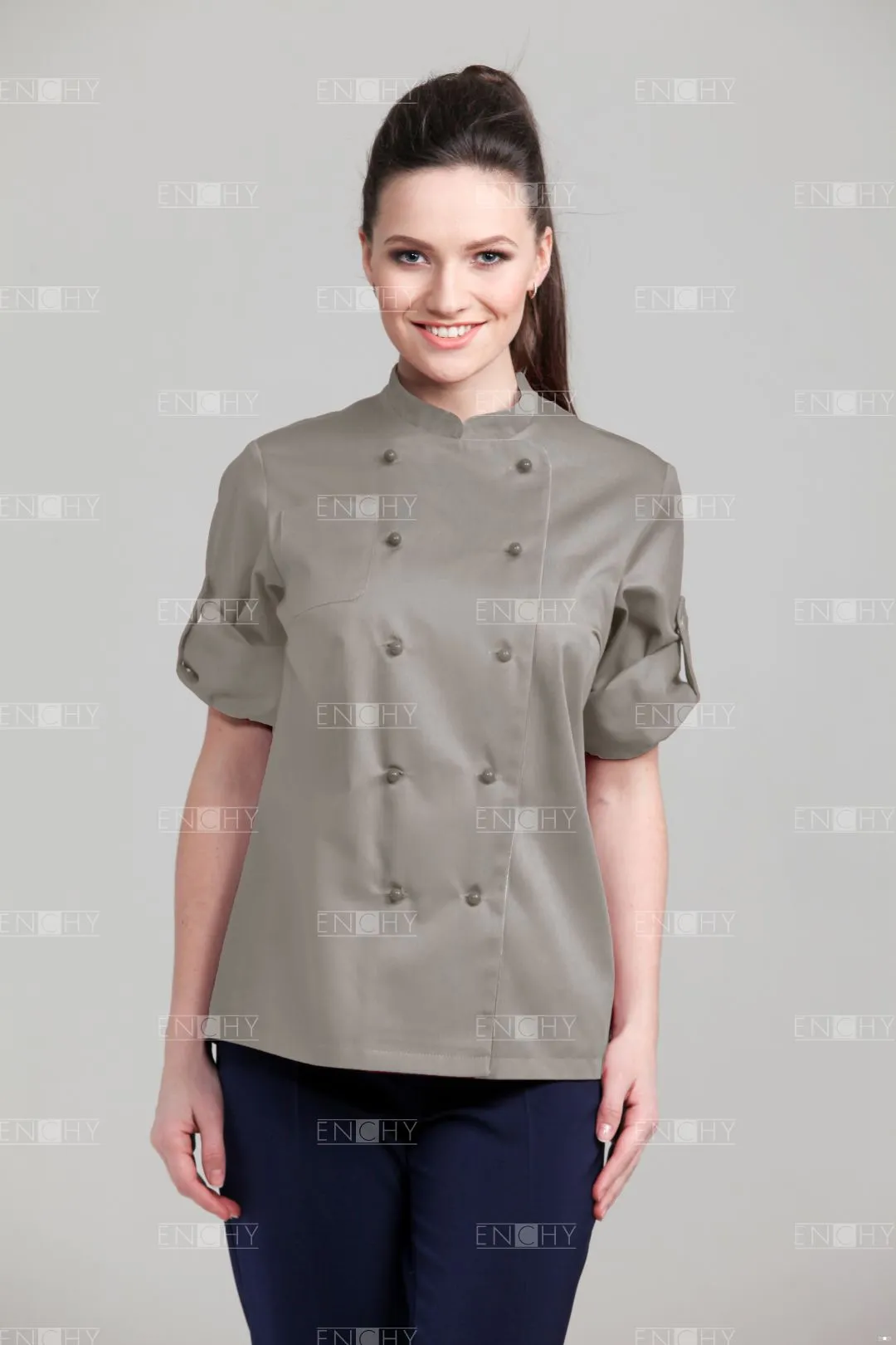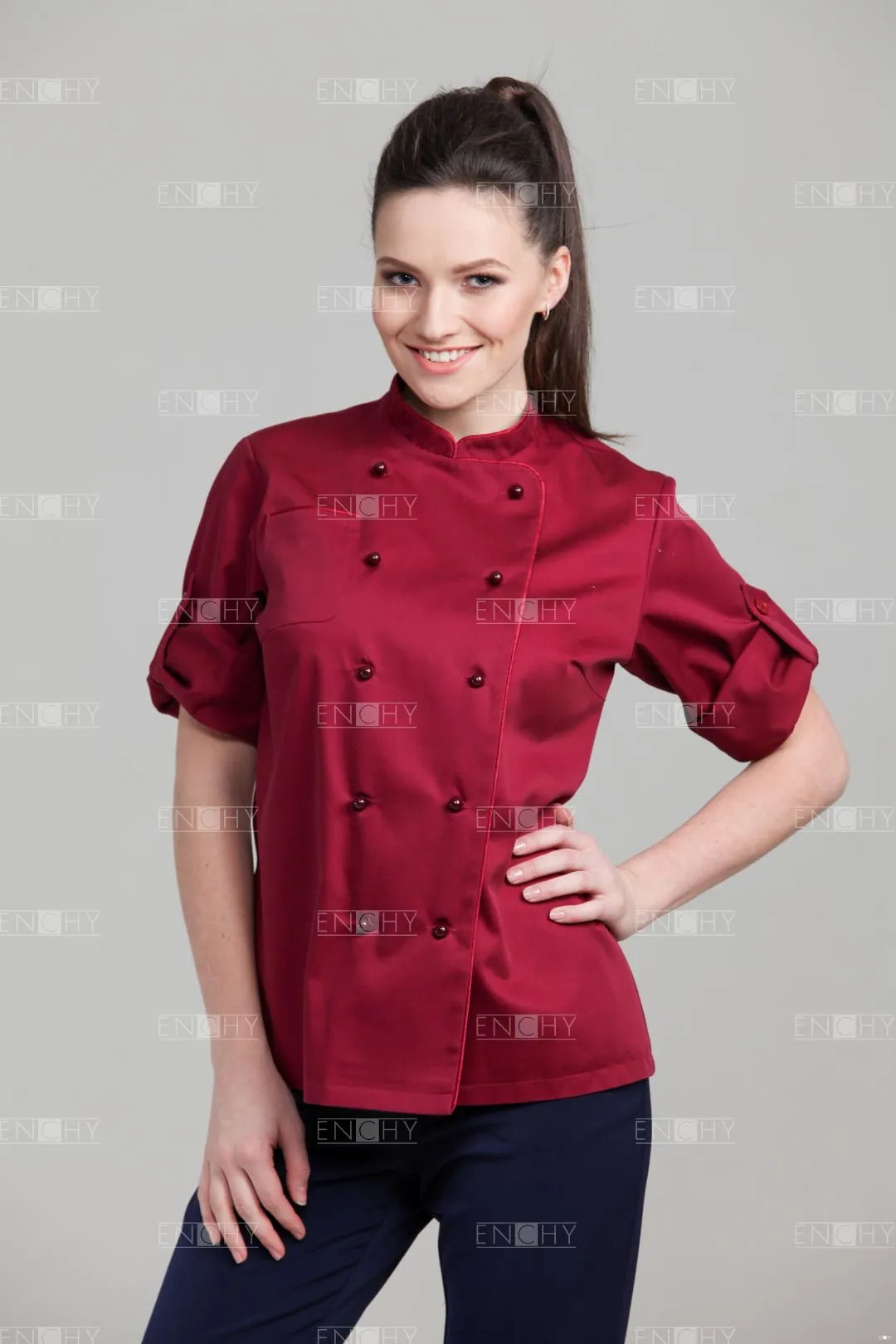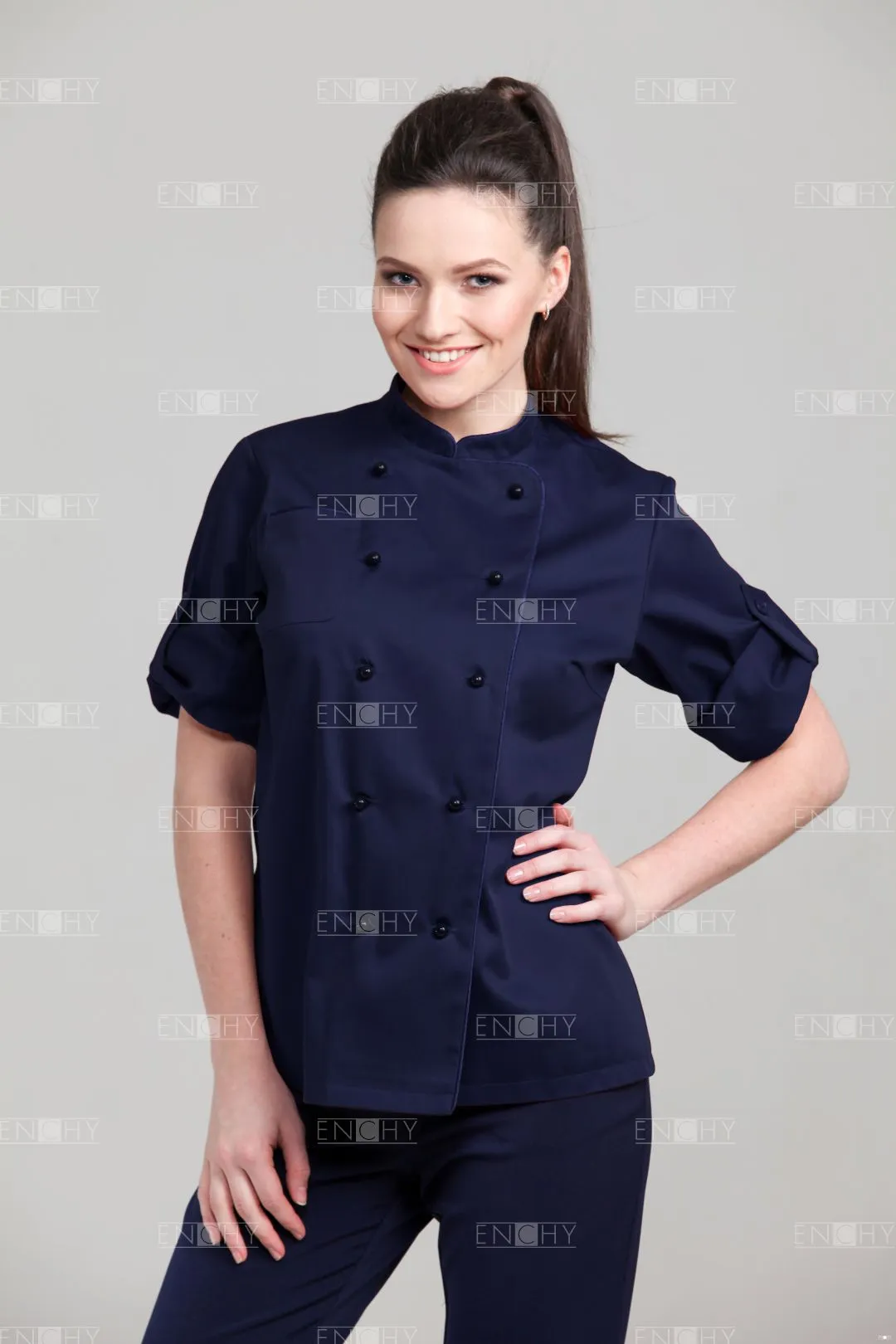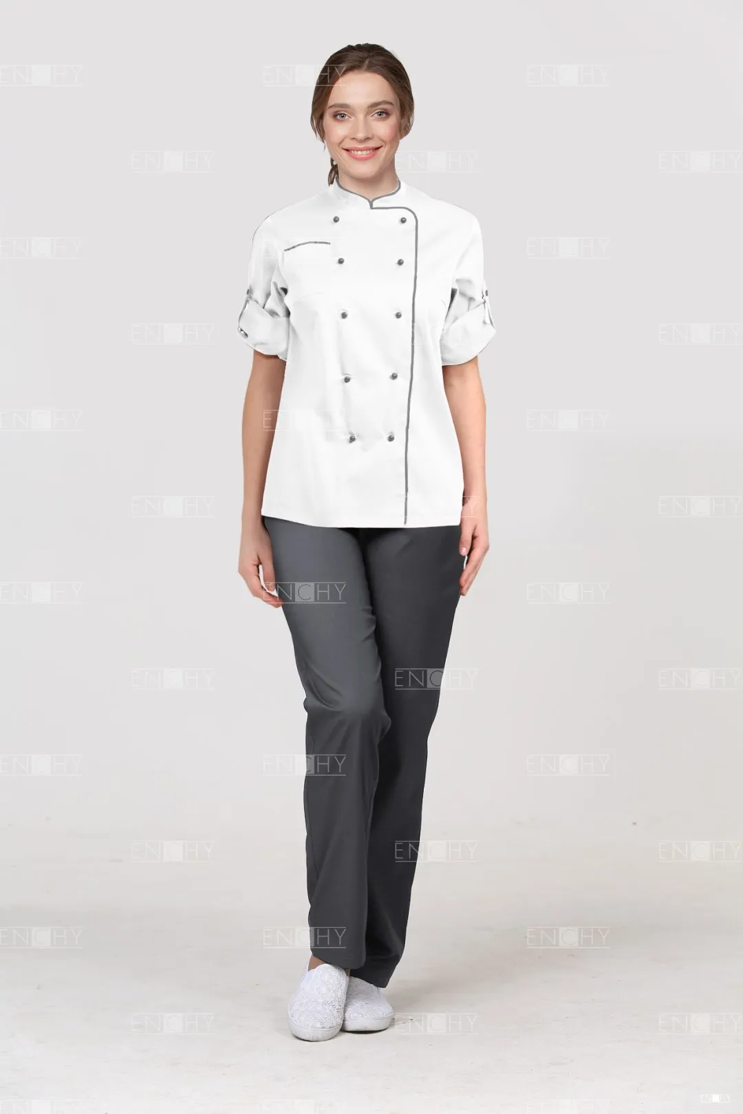 Женский поварской китель с удобным рукавом 3/4, который подворачивается и закрепляется патой с пуговицей - не только стильный, но и удобный вариант.