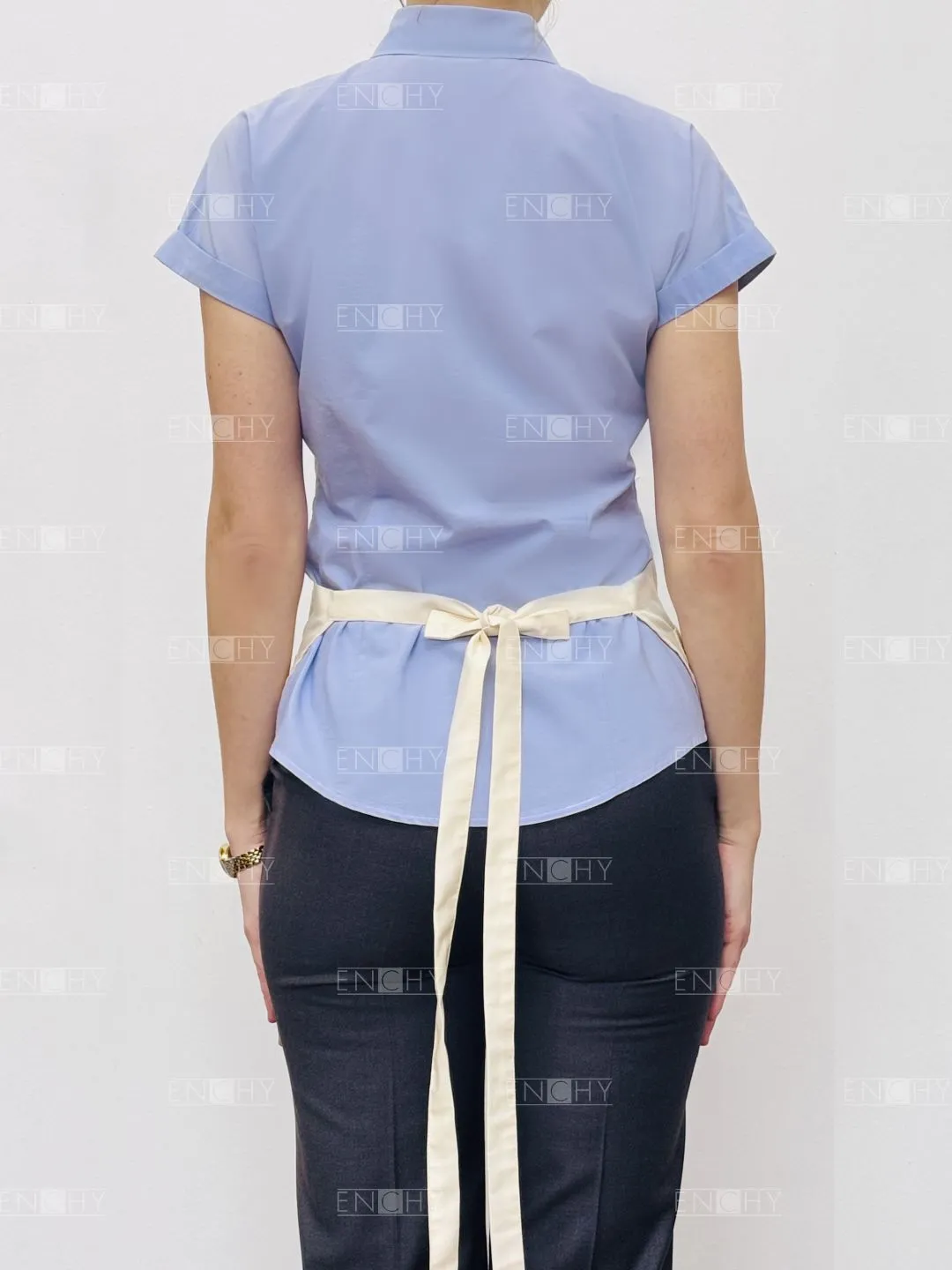 Стильный передник трапецевидной формы с накладным карманом и держателем для полотенца. Завязывается на тонкий пояс на переде.