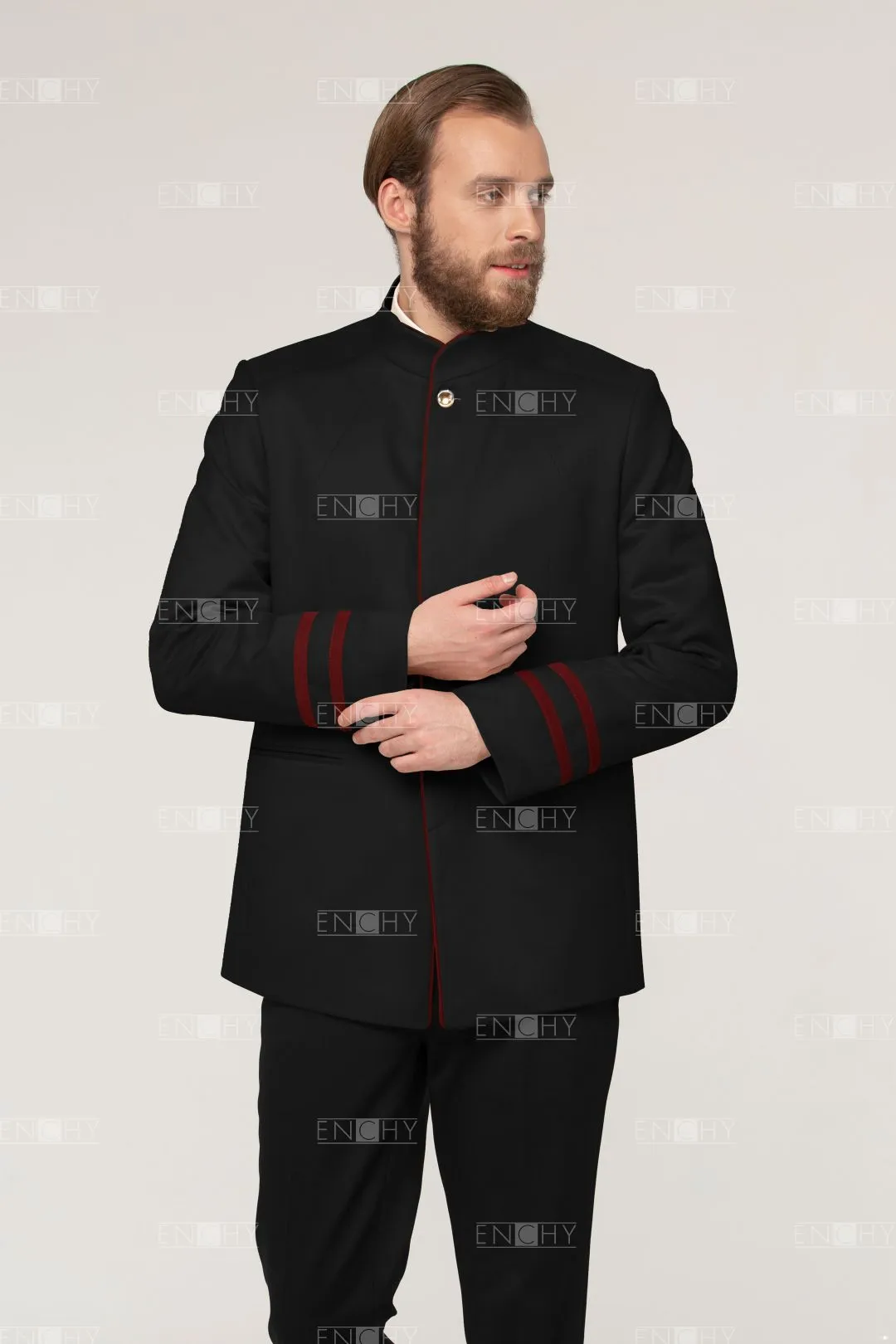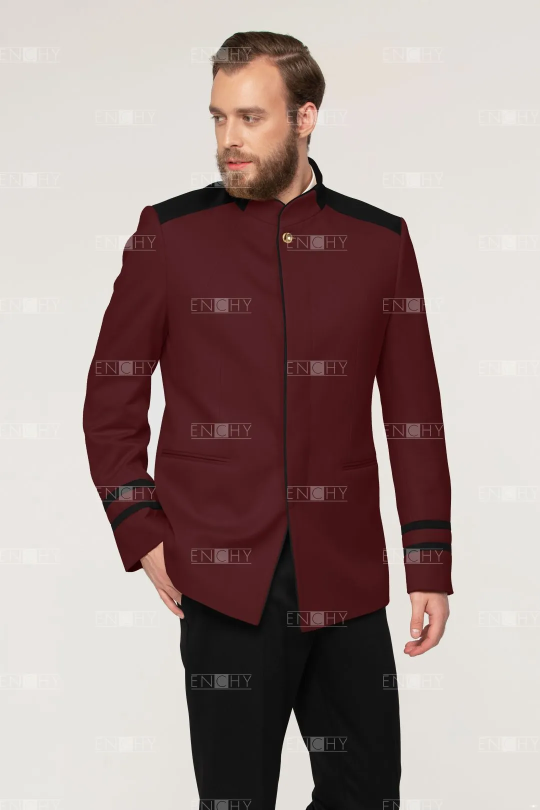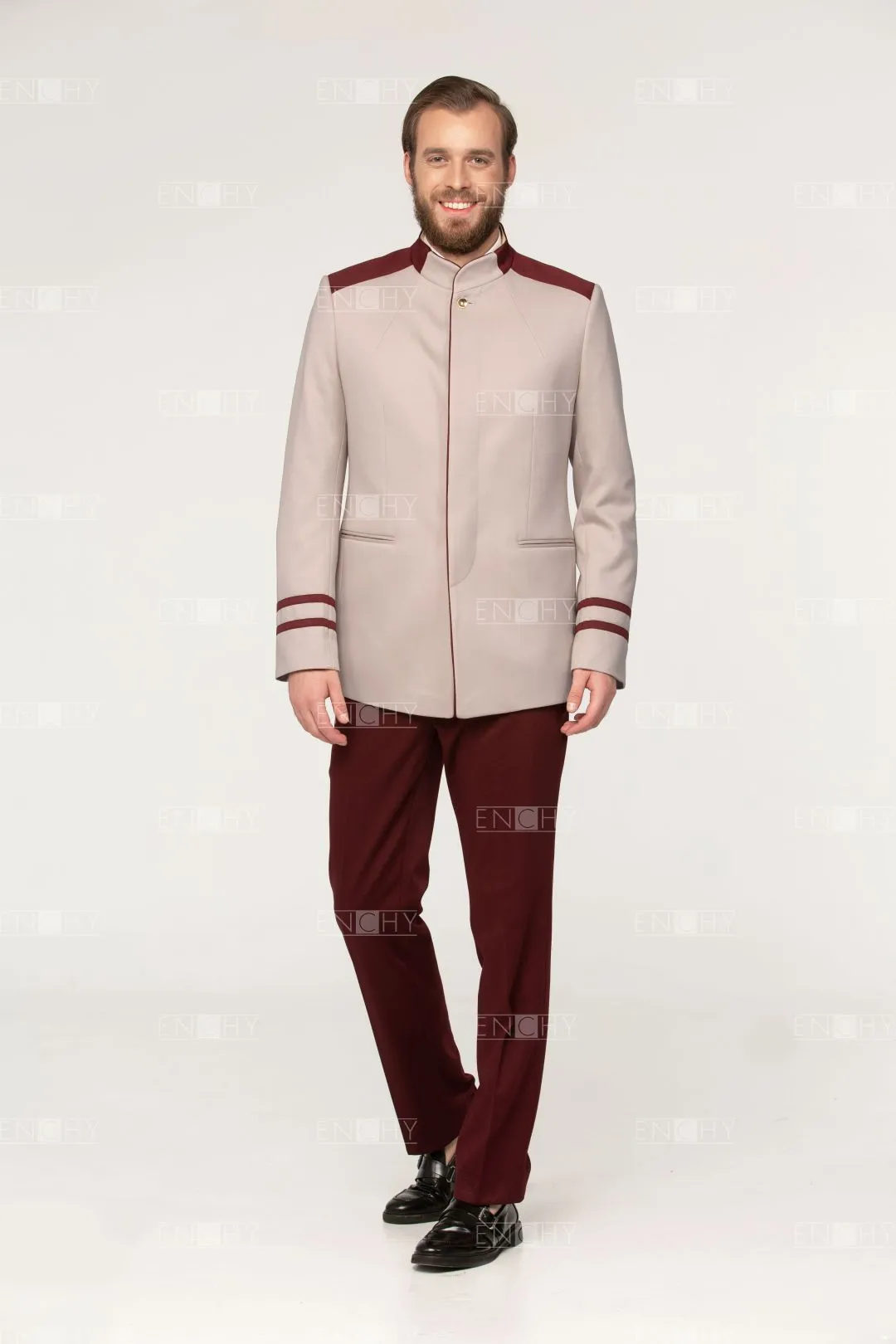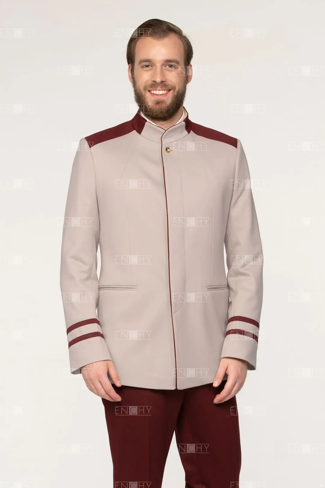 Стильный пиджак с воротником стойкой и карманами в рамку.