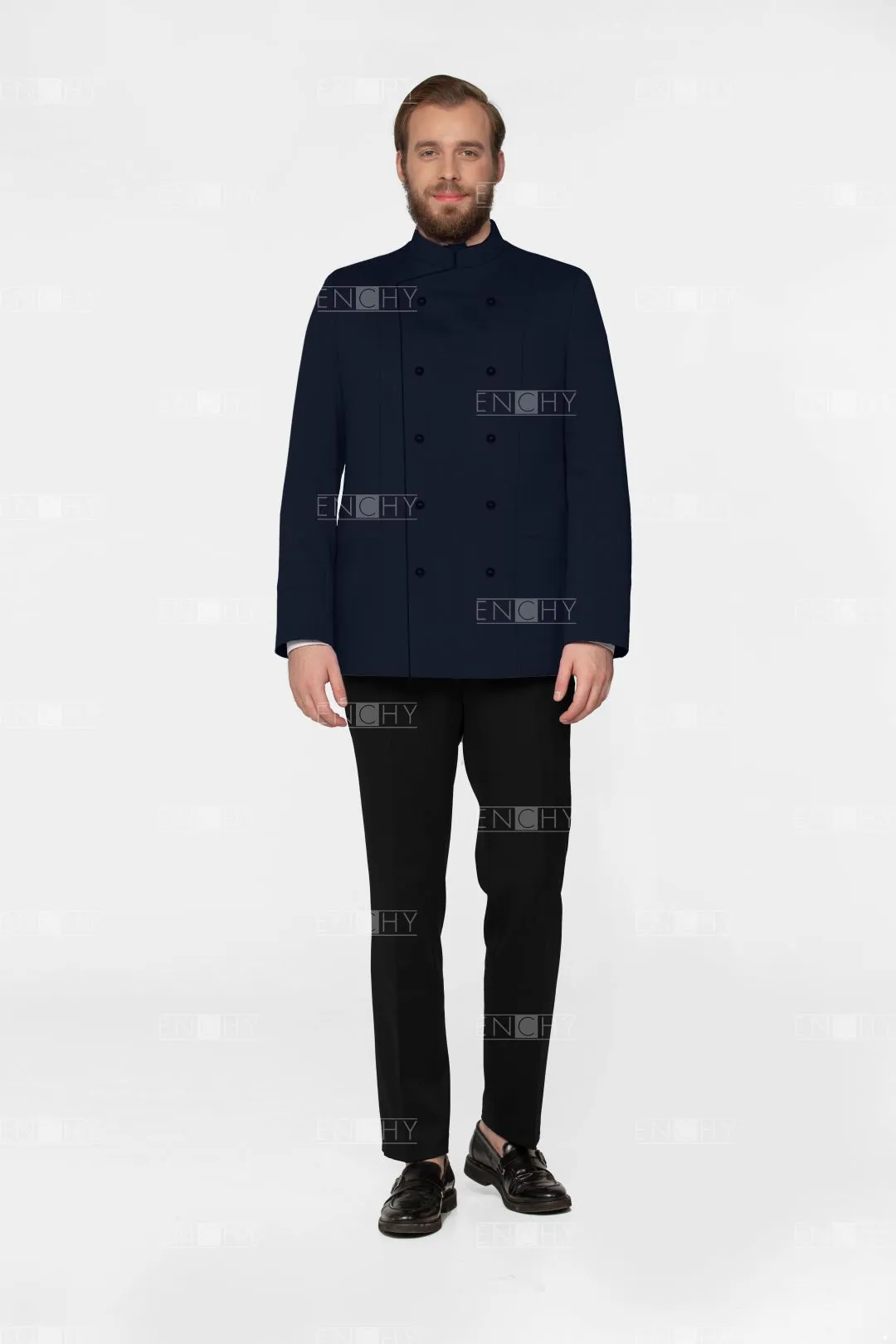 Двубортный "облегченный" мужской пиджак без подкладки. Застежка на 2 ряда пуговиц, воротник стойка.