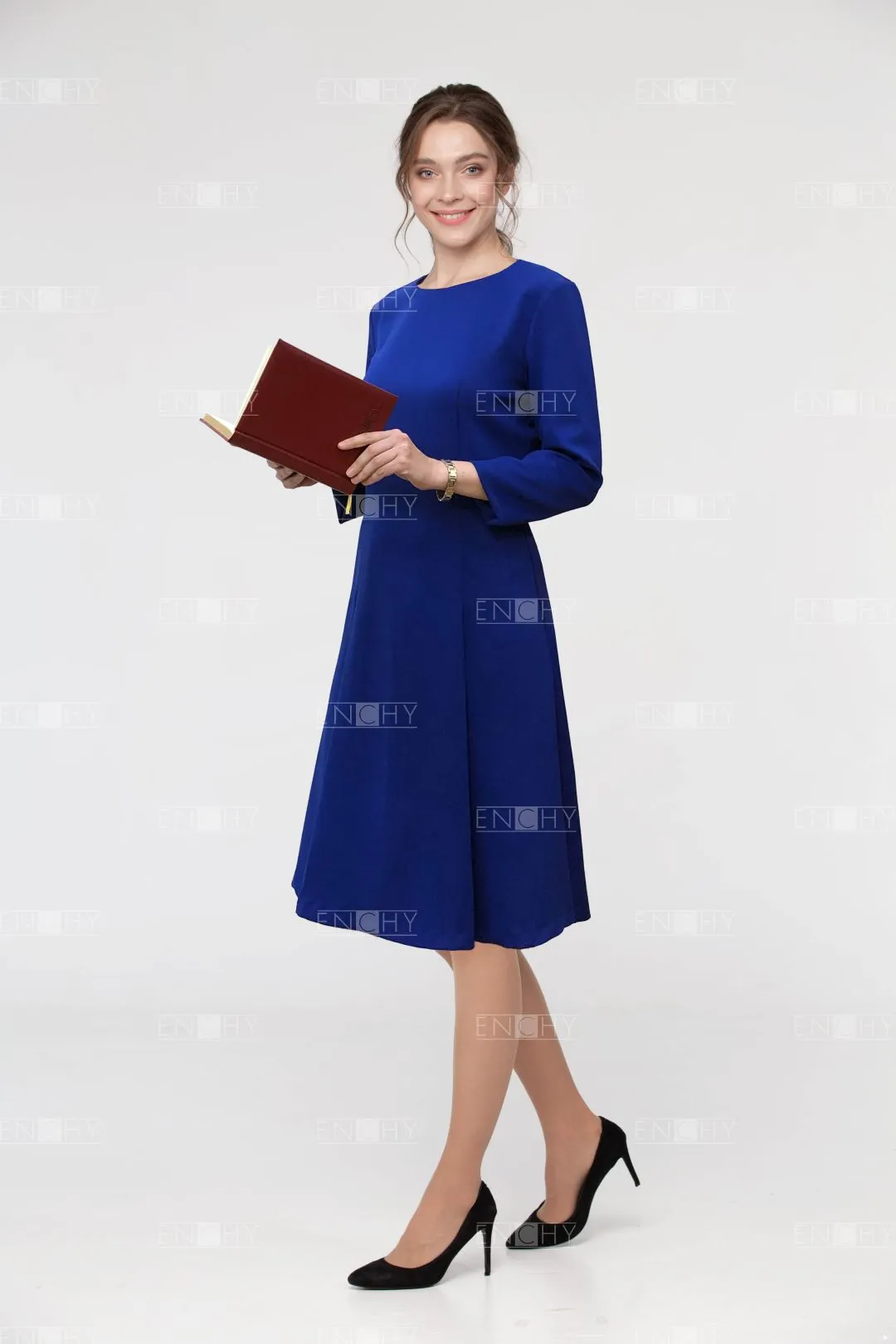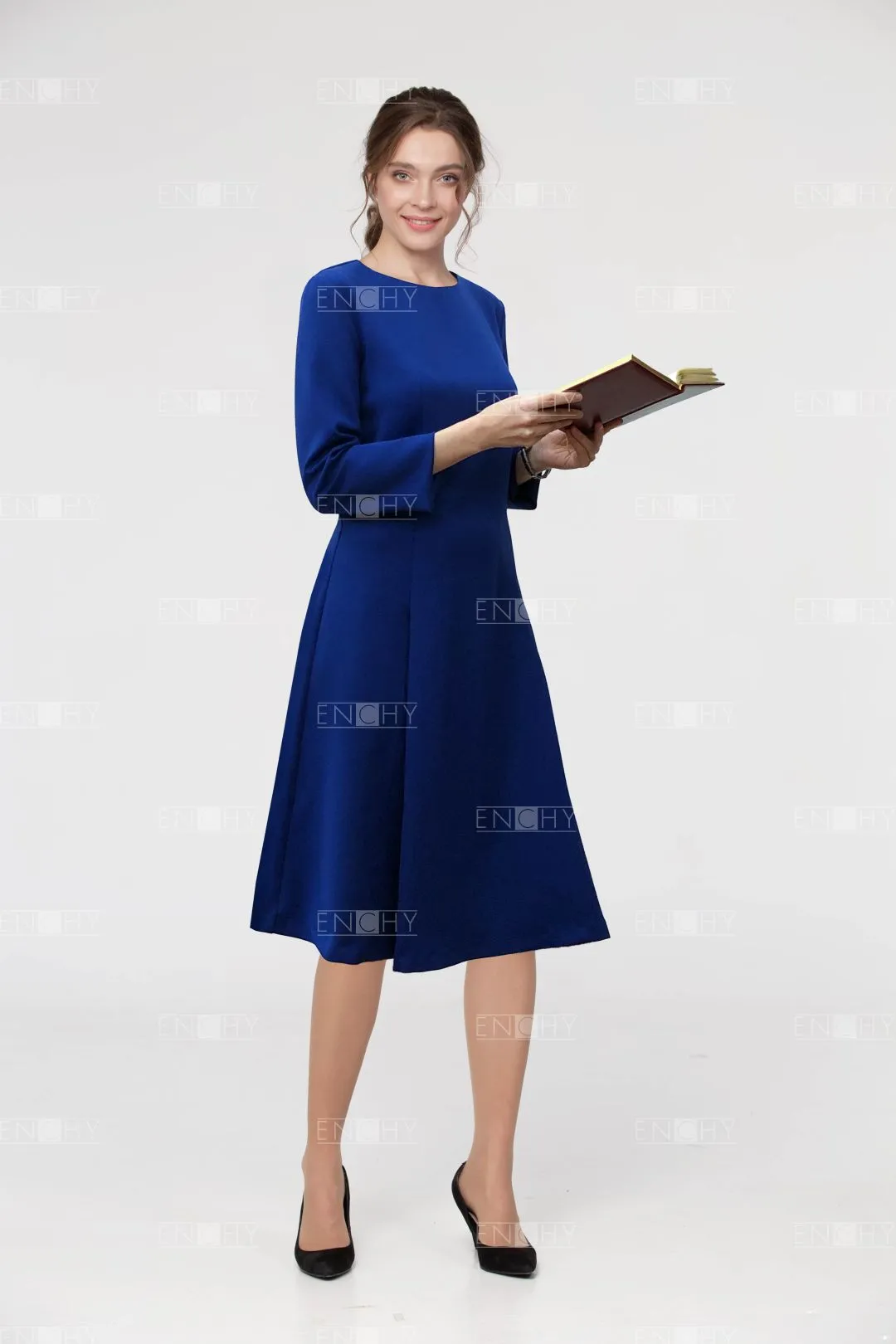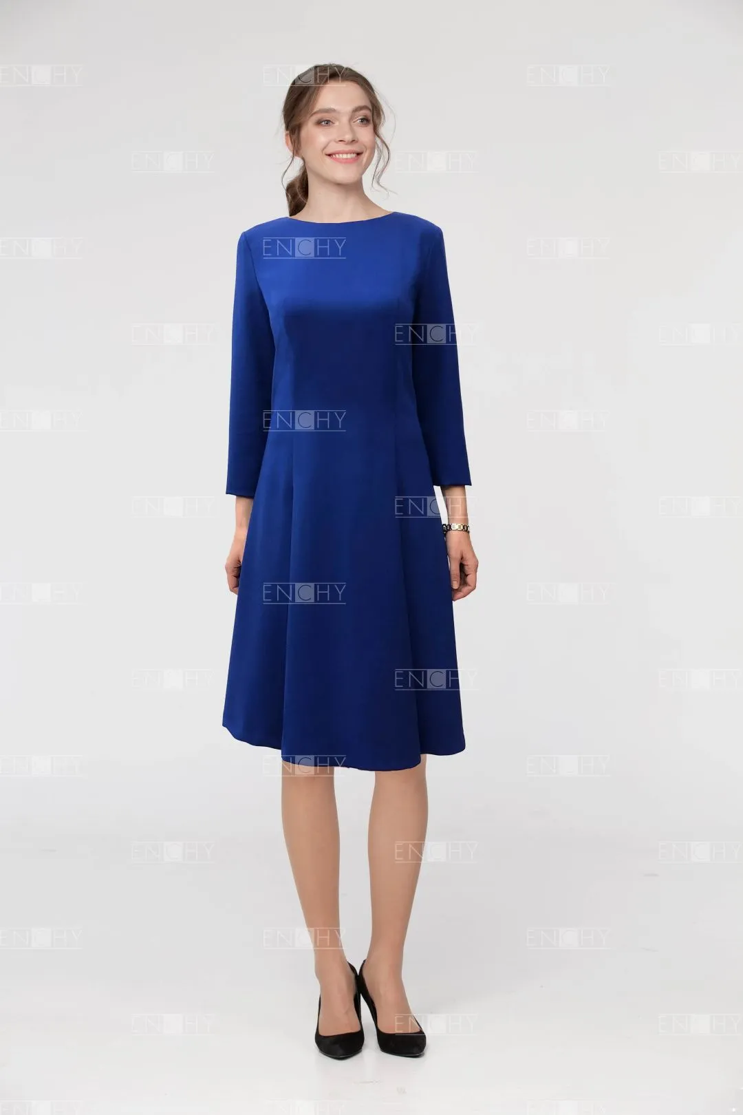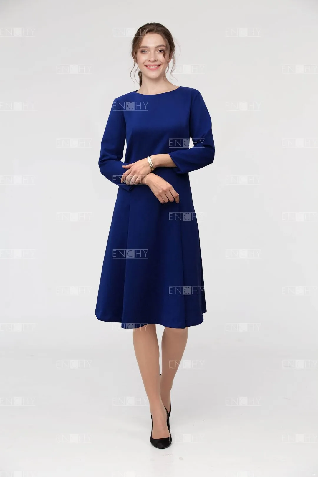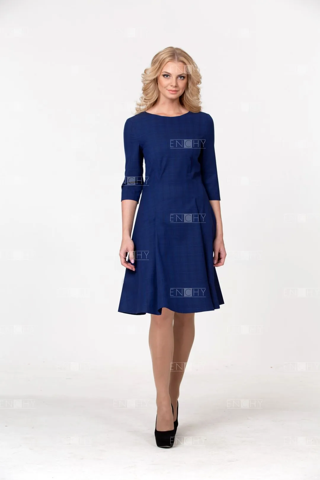 Приталенное платье с застроченными до линии бедра складками. Эта женственная модель с рукавом 3/4 подойдет любой фигуре.