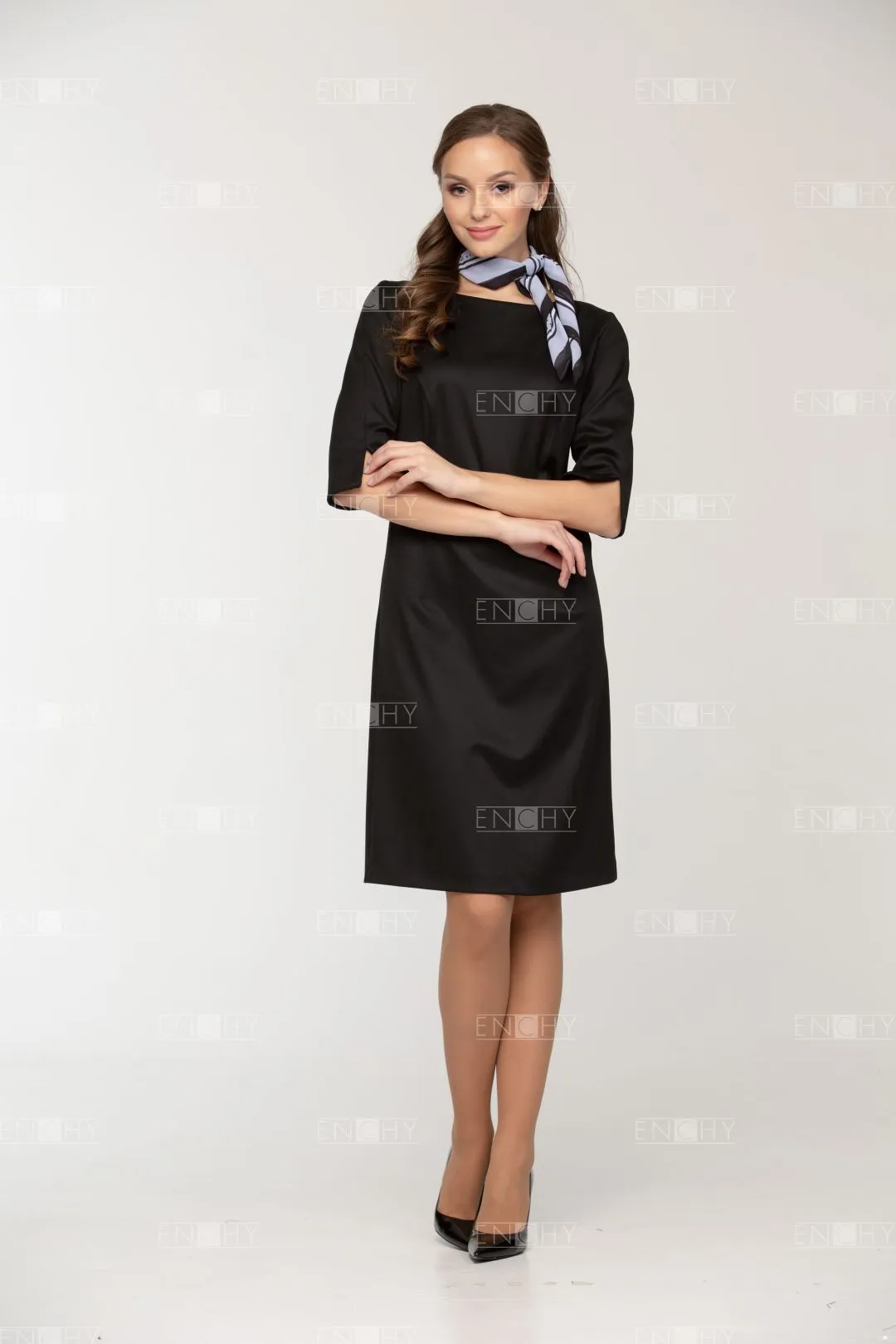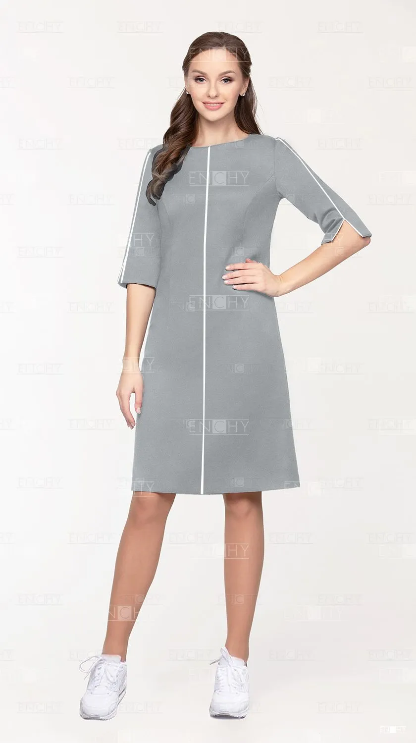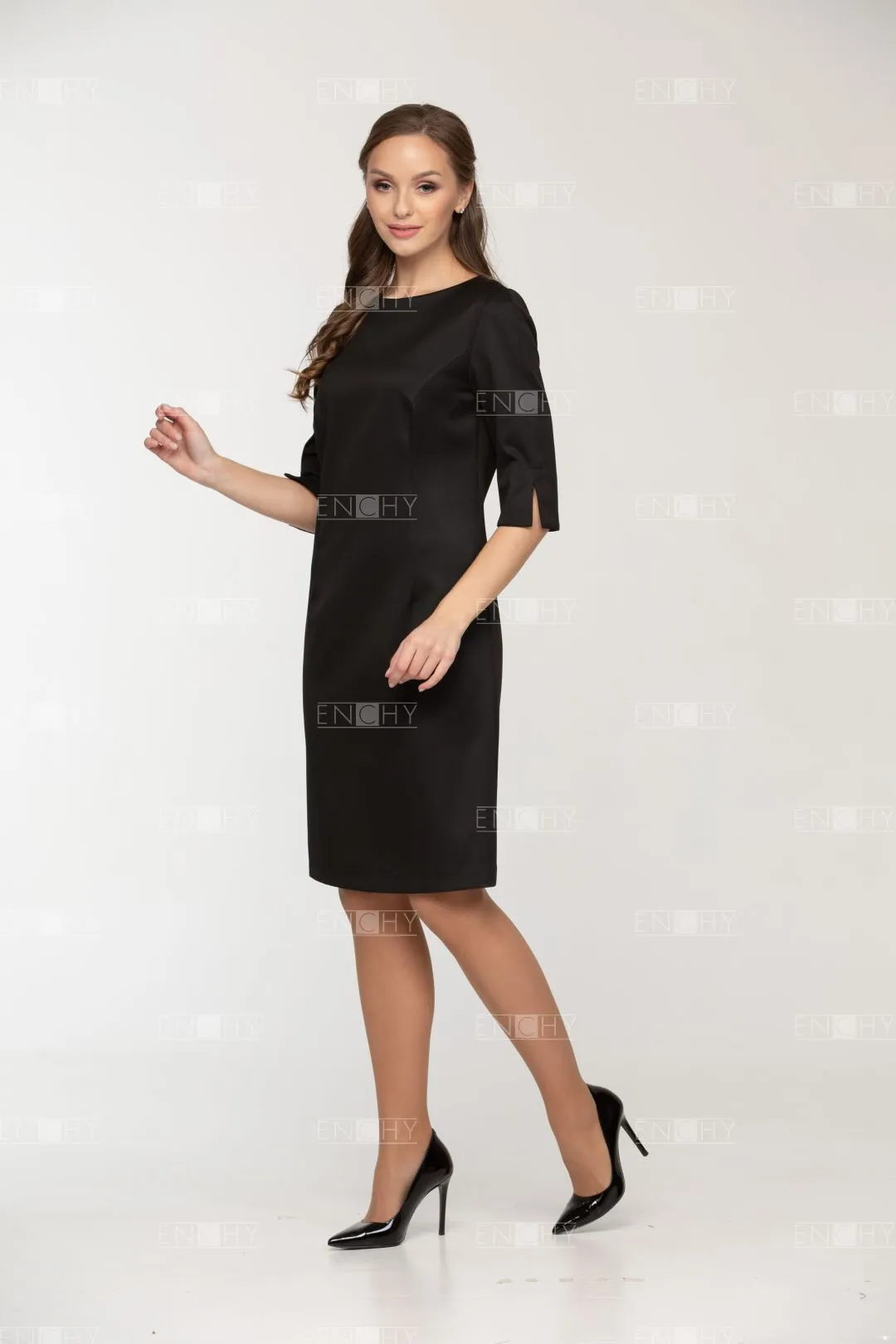 Минимализм - фаворит офисной эстетики. Это платье лаконичного кроя будет отлично смотреться как в салоне магазина, так и в строгом деловом окружении. Кокетливые разрезы на рукаве.