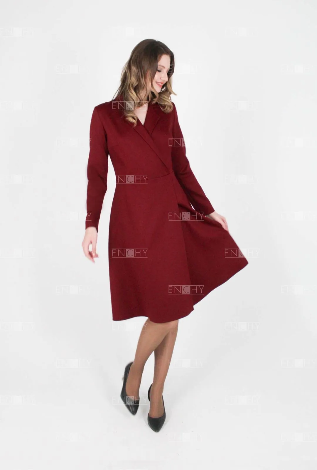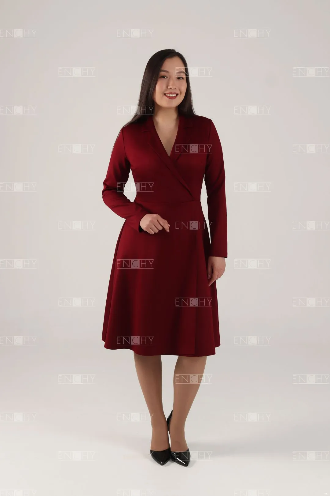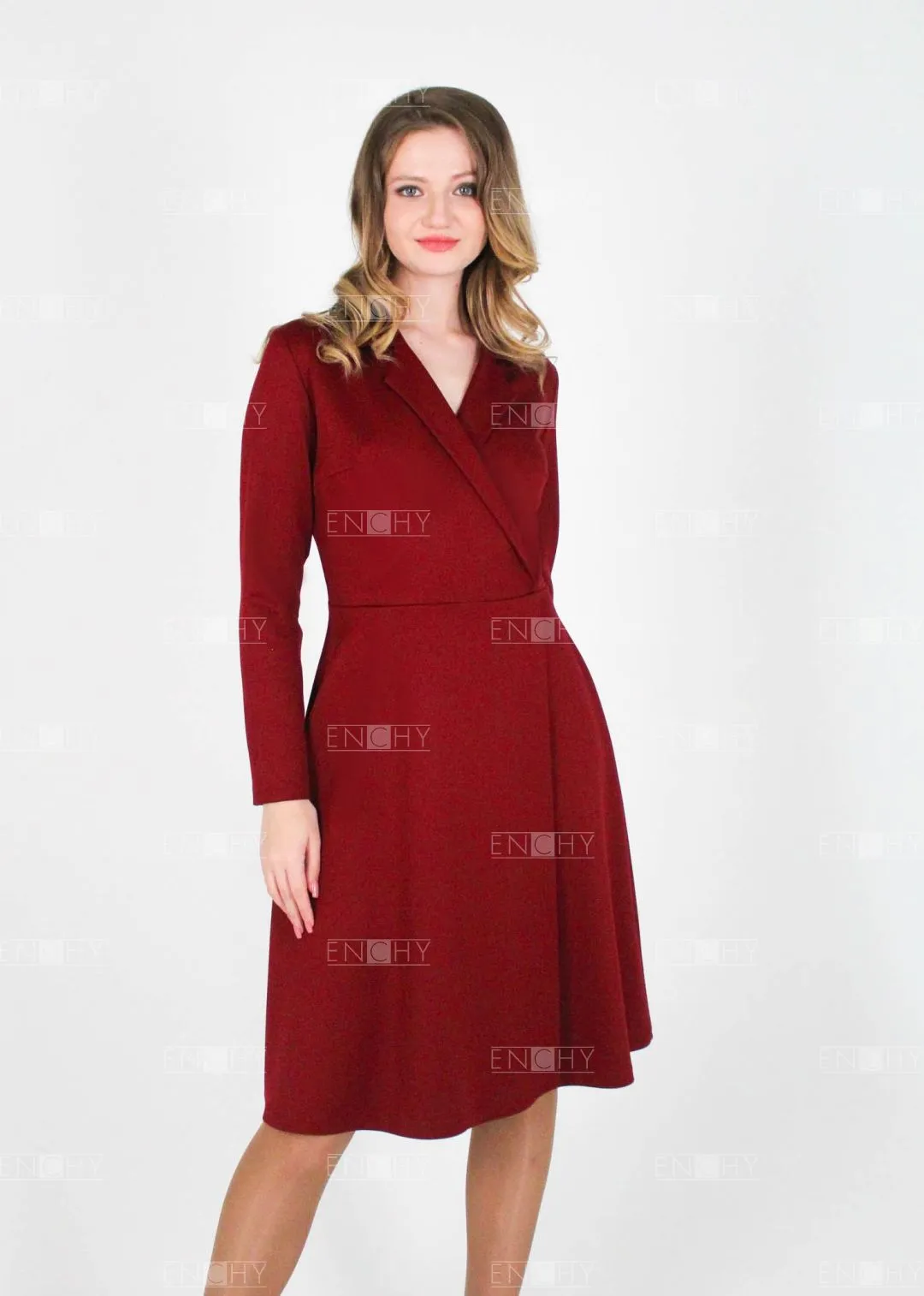 Стильное платье с летящей юбкой! Воротник с лацканом идеально подойдет для рабочей среды, пояс подчеркивает не только талию но и ваш стиль!