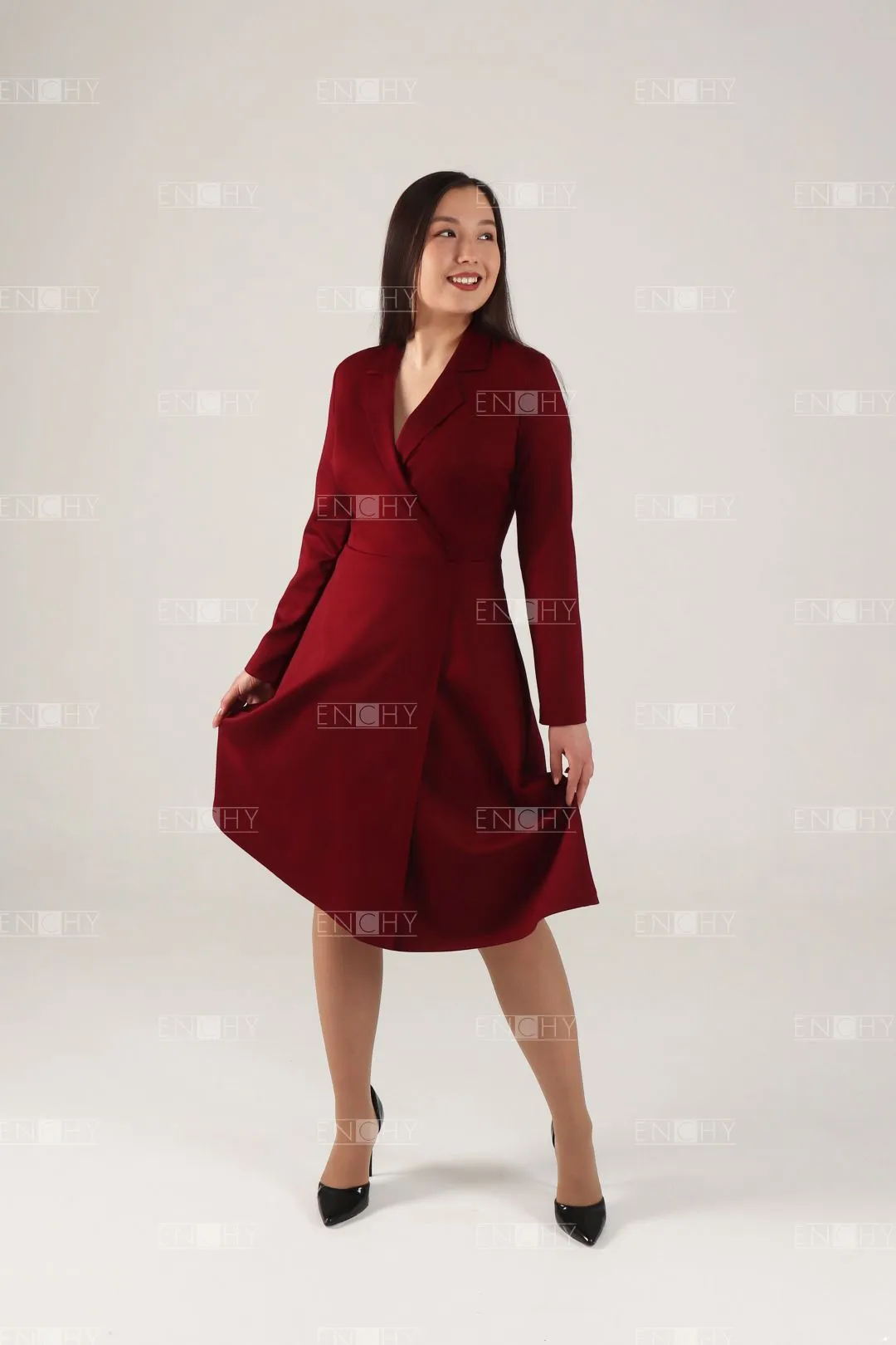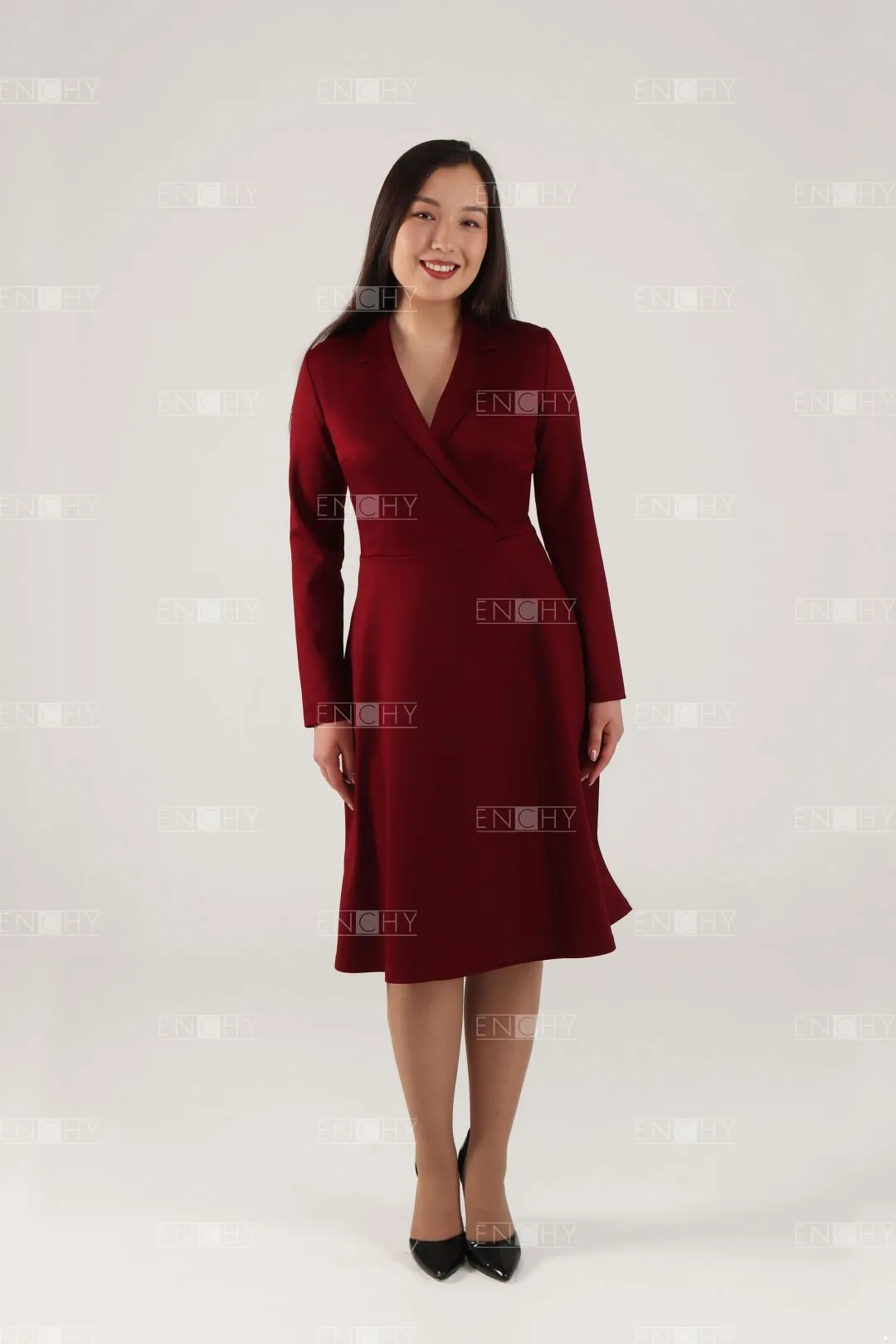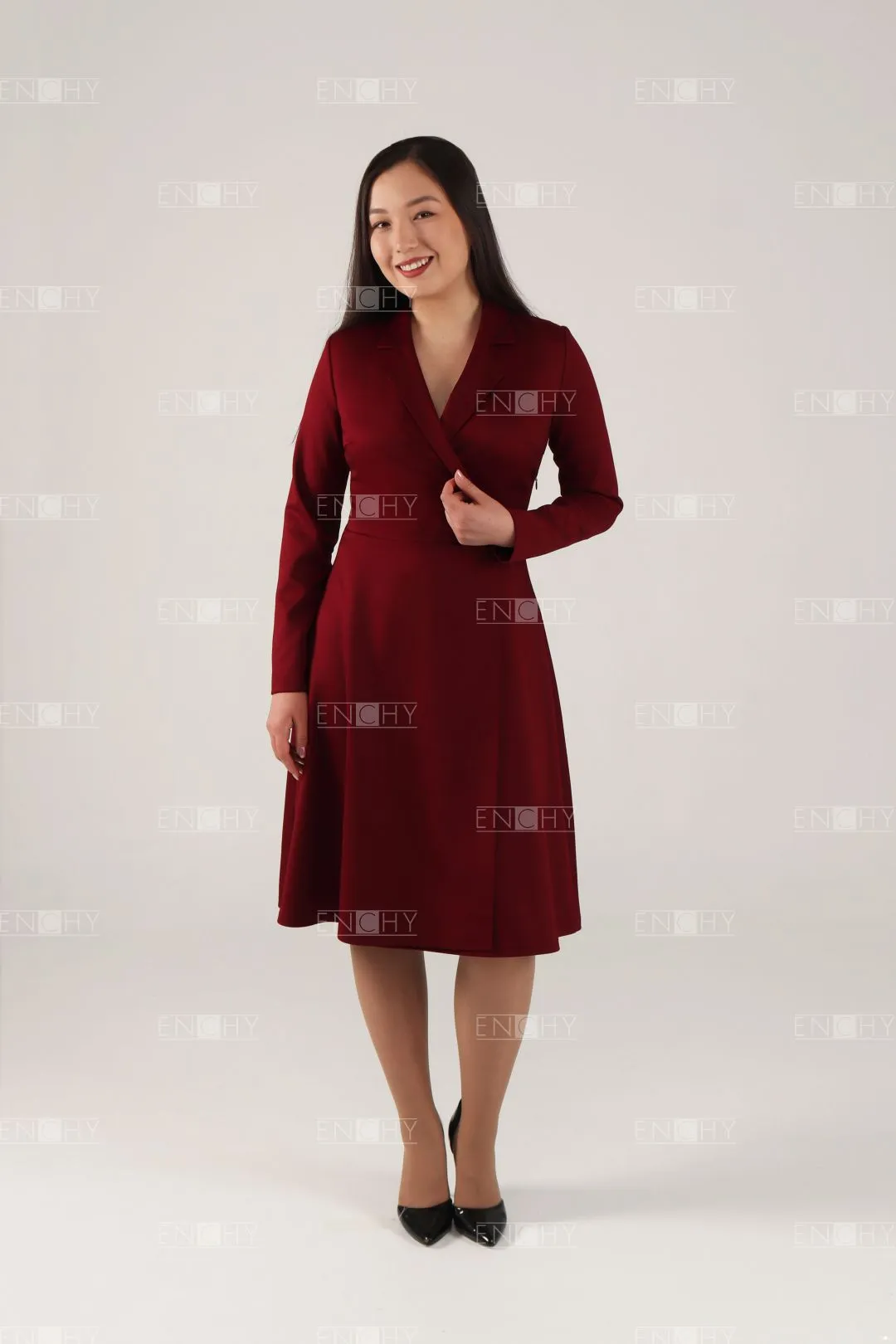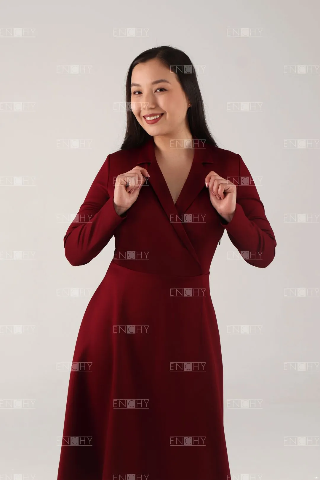 Стильное платье с летящей юбкой! Воротник с лацканом идеально подойдет для рабочей среды, пояс подчеркивает не только талию но и ваш стиль!