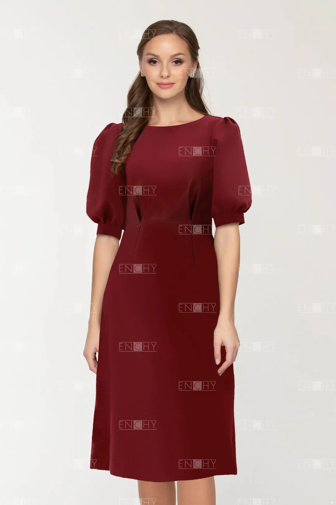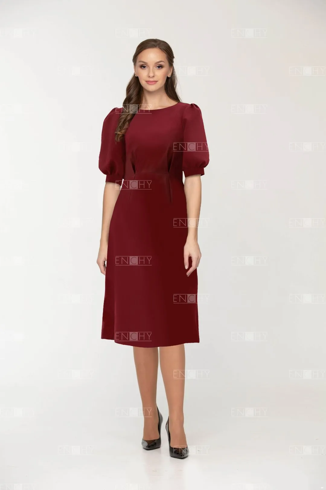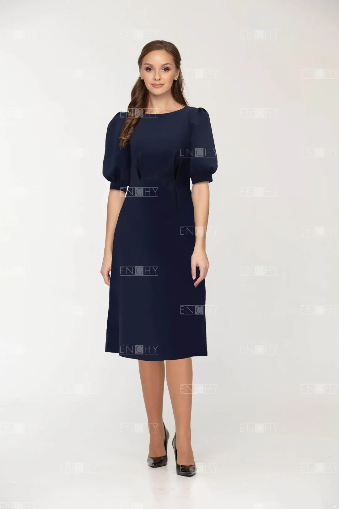 Нежное женственное платье станет отличным выбором для администраторов и хостес! Платье с защипами на груди, расширенной юбкой к низу, отрезной линией талии, объемными рукавами со складками на манжетах. Модель имеет много складок, поэтому рекомендуем использовать более тонкие драпируемые ткани.