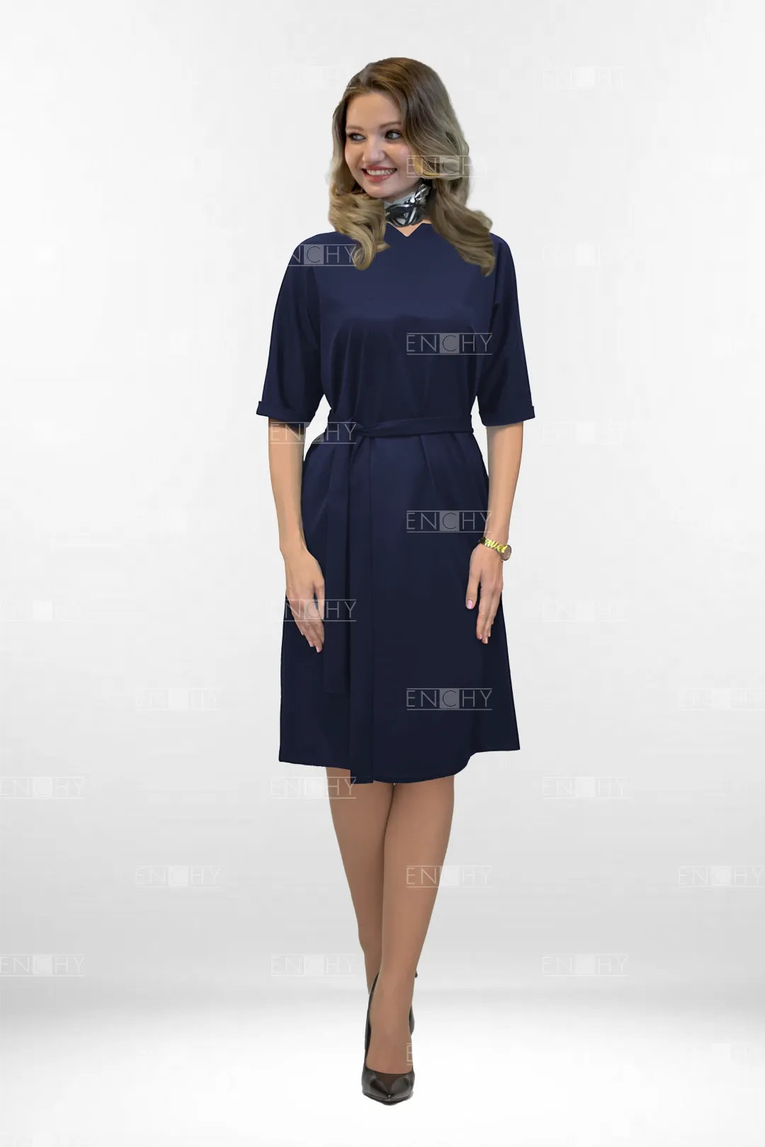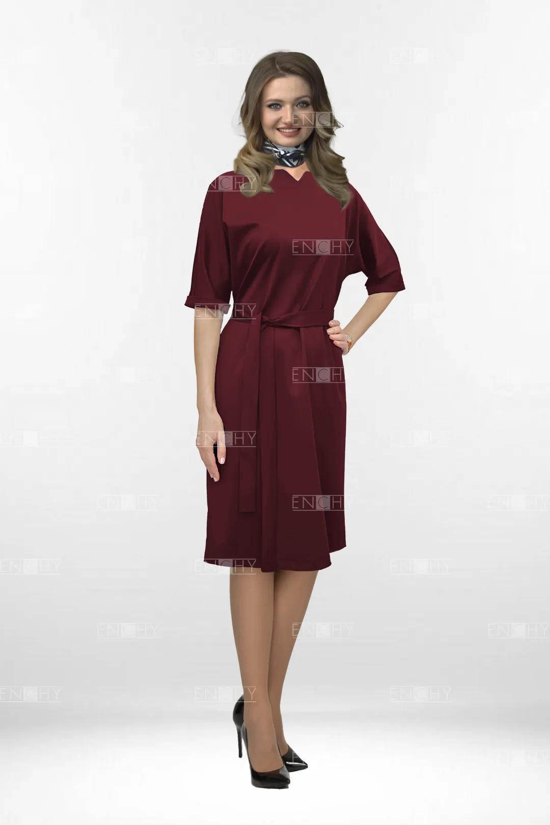 Свободное классическое платье идеально садится по фигуре благодаря поясу, который подчеркивает талию. Горловина изделия выполнена в виде "лодочки". Здесь лаконичность и элегантность сочетаются в одном образе. Подходит для любого случая - как для рабочей обстановки, так и для праздничного вечера