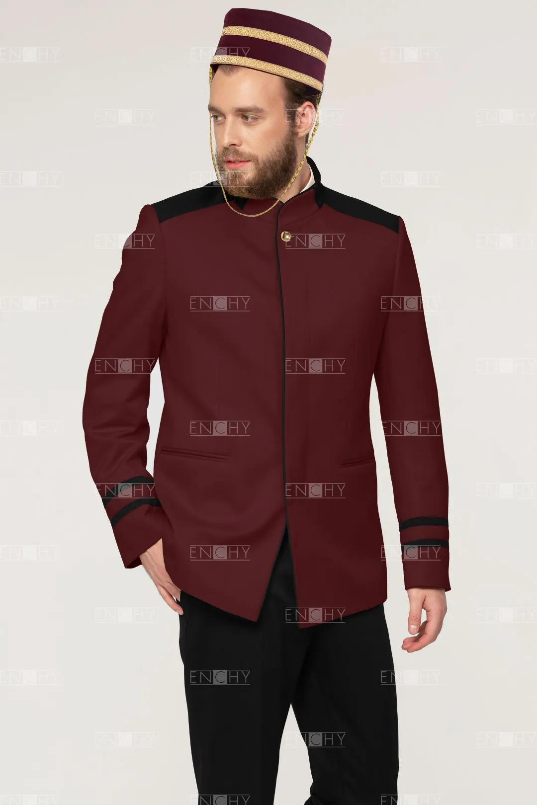 Шапочка портье — это стильный элемент униформы, предназначенный для сотрудников магазинов, отелей и ресторанов, обеспечивающий единый и профессиональный внешний вид. Шапочка портье, с отделкой тесьмой по периметру в 2 ряда и тесьмой которая фиксирует ее у подбородка , на подкладке.